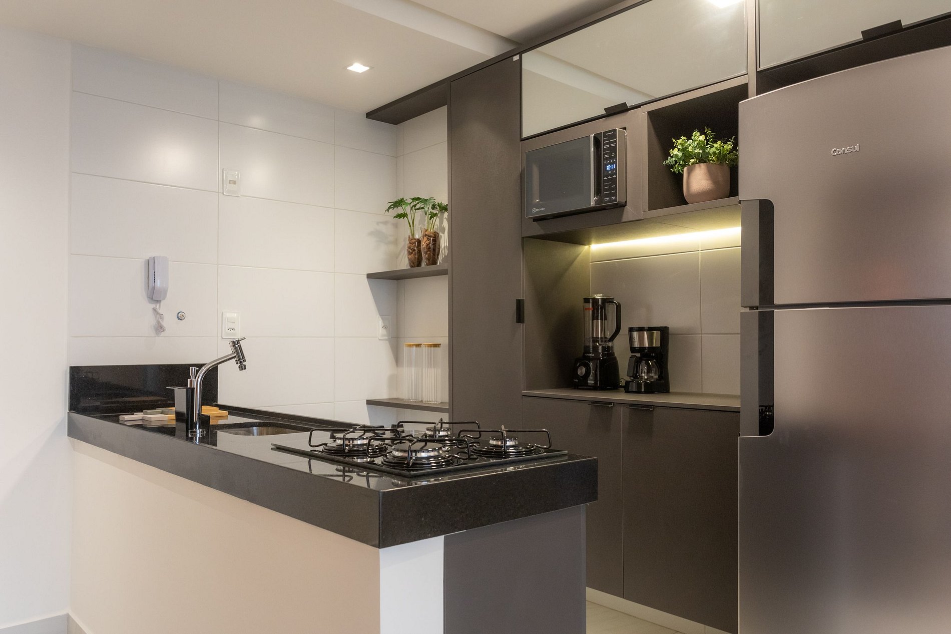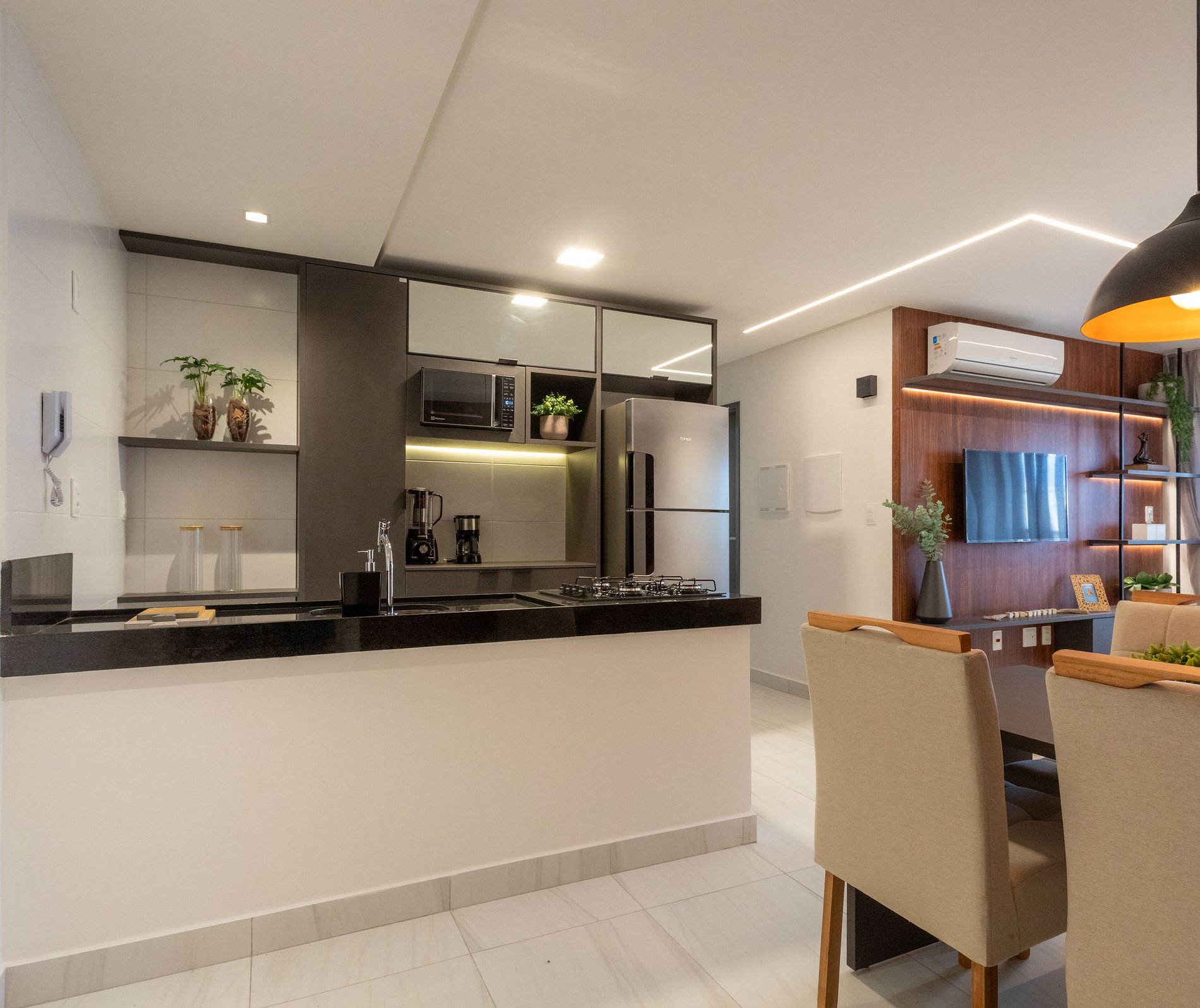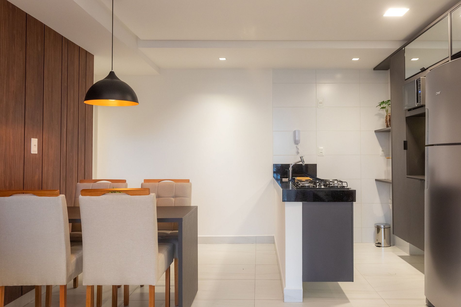 O apartamento é completo, com cozinha equipada (eletrodomésticos e utensílios) para preparar suas refeições com conforto.