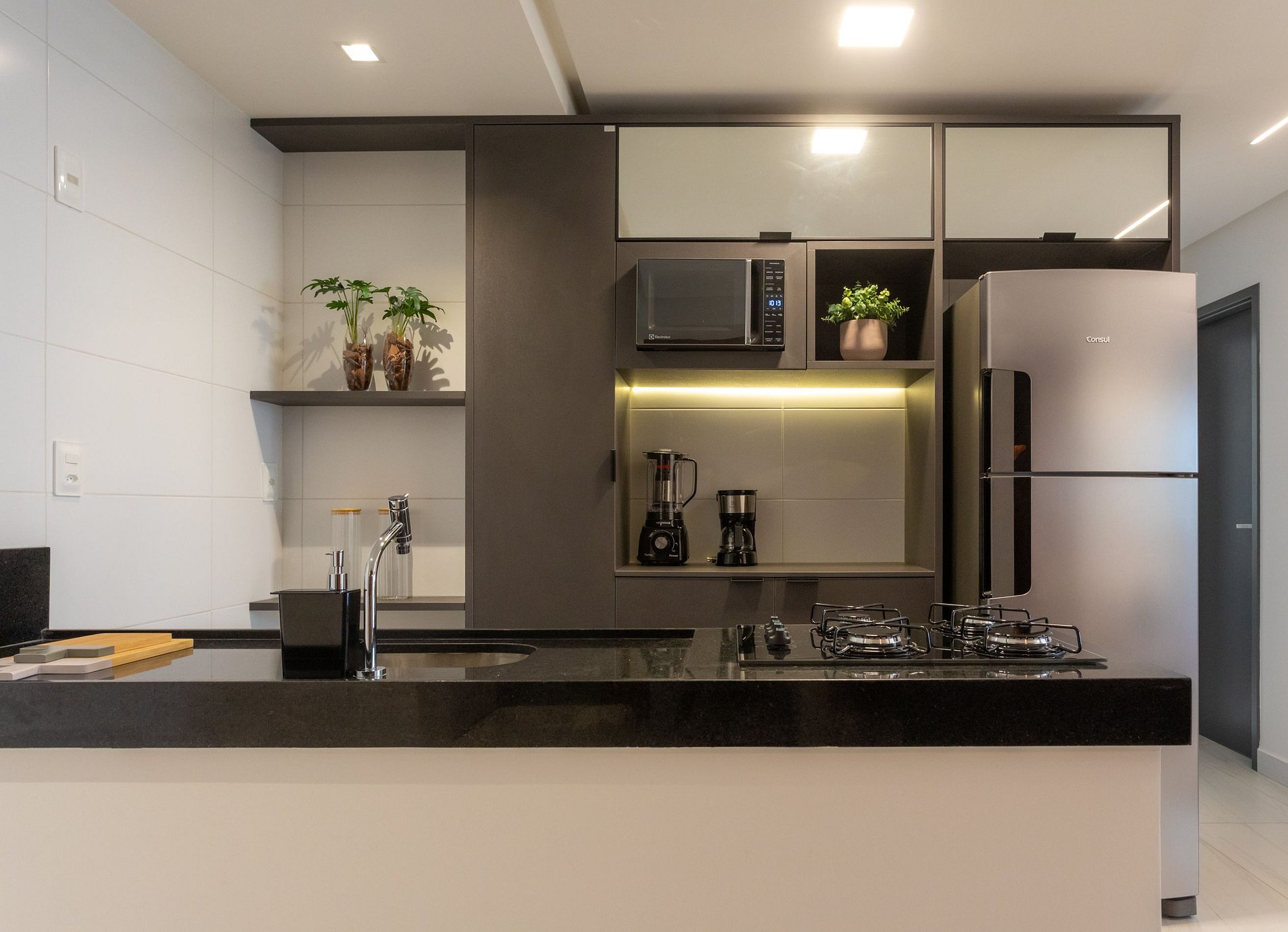Deixamos itens iniciais (papel higiênico, detergente, pano de prato etc.) para sua chegada.
