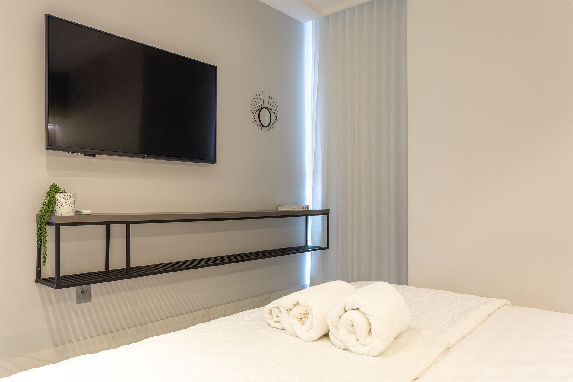 O apartamento é completo, com cozinha equipada (eletrodomésticos e utensílios) para preparar suas refeições com conforto.