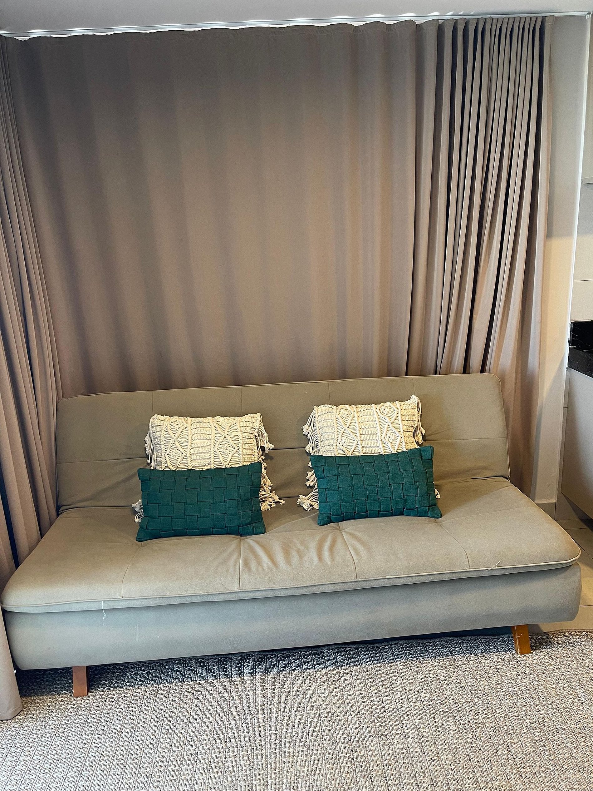 • Divisória retrátil entre quarto e sala, garantindo privacidade quando necessário
