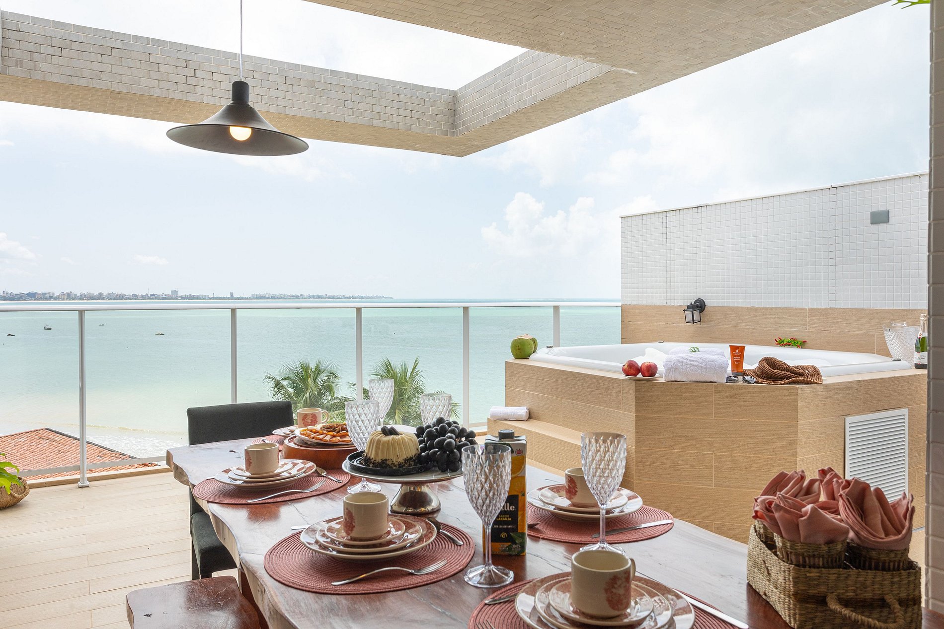 • Banheira Privativa com Vista para o Mar um verdadeiro refúgio no terraço da cobertura, perfeita para relaxar ao final do dia com uma vista panorâmica da praia do Bessa.