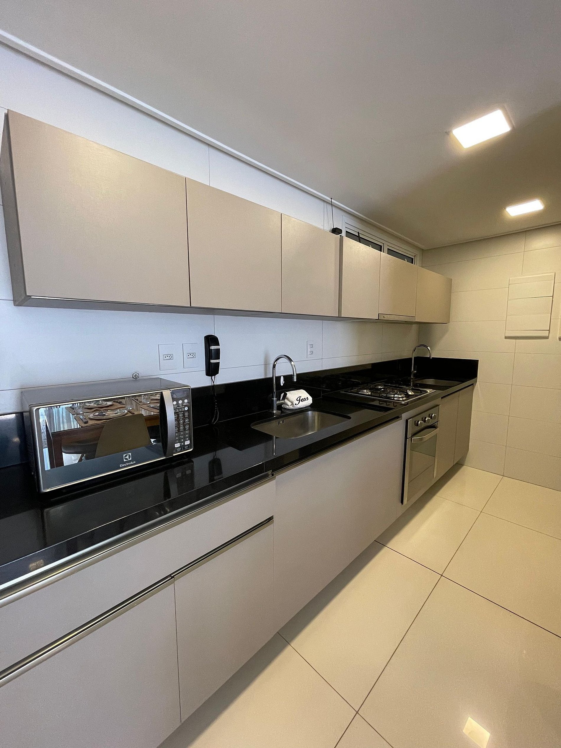O apartamento é completo, com cozinha equipada (eletrodomésticos e utensílios) para preparar suas refeições com conforto.