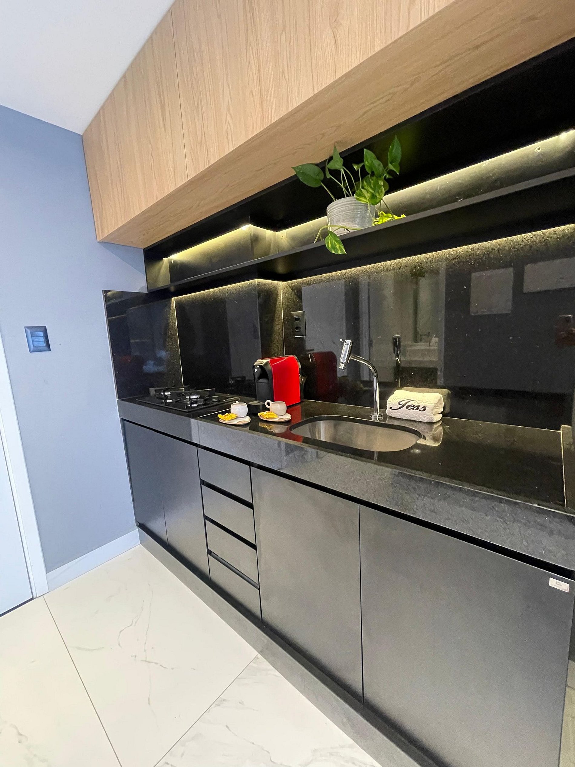 Deixamos itens iniciais (papel higiênico, detergente, pano de prato etc.) para sua chegada.