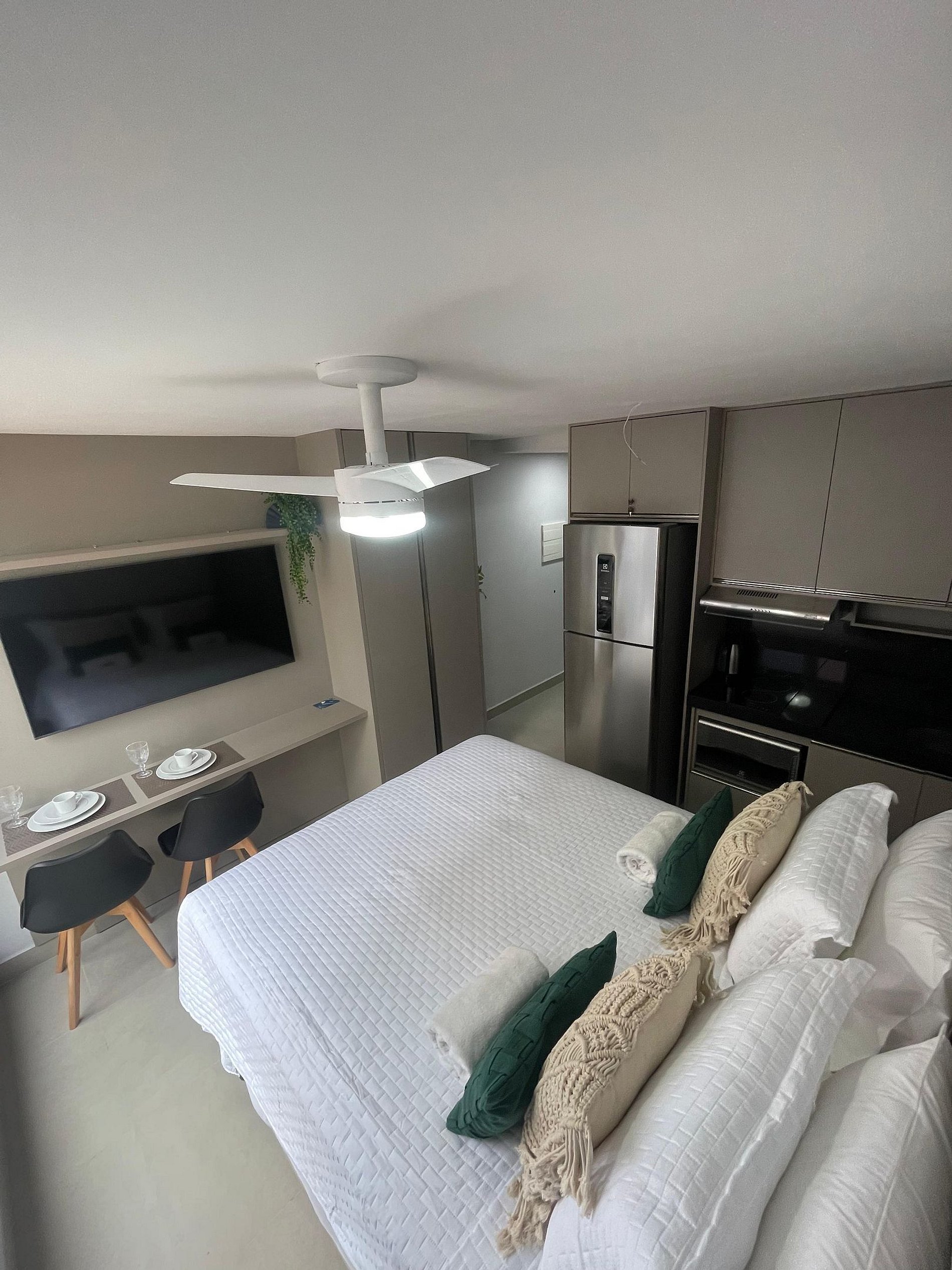 Aproveite a excelente estrutura do condomínio, que inclui piscina, academia, jardim, Wi-Fi gratuito e estacionamento rotativo. As unidades são completamente equipadas com ar-condicionado, cozinha moderna, além de banheiro privativo.