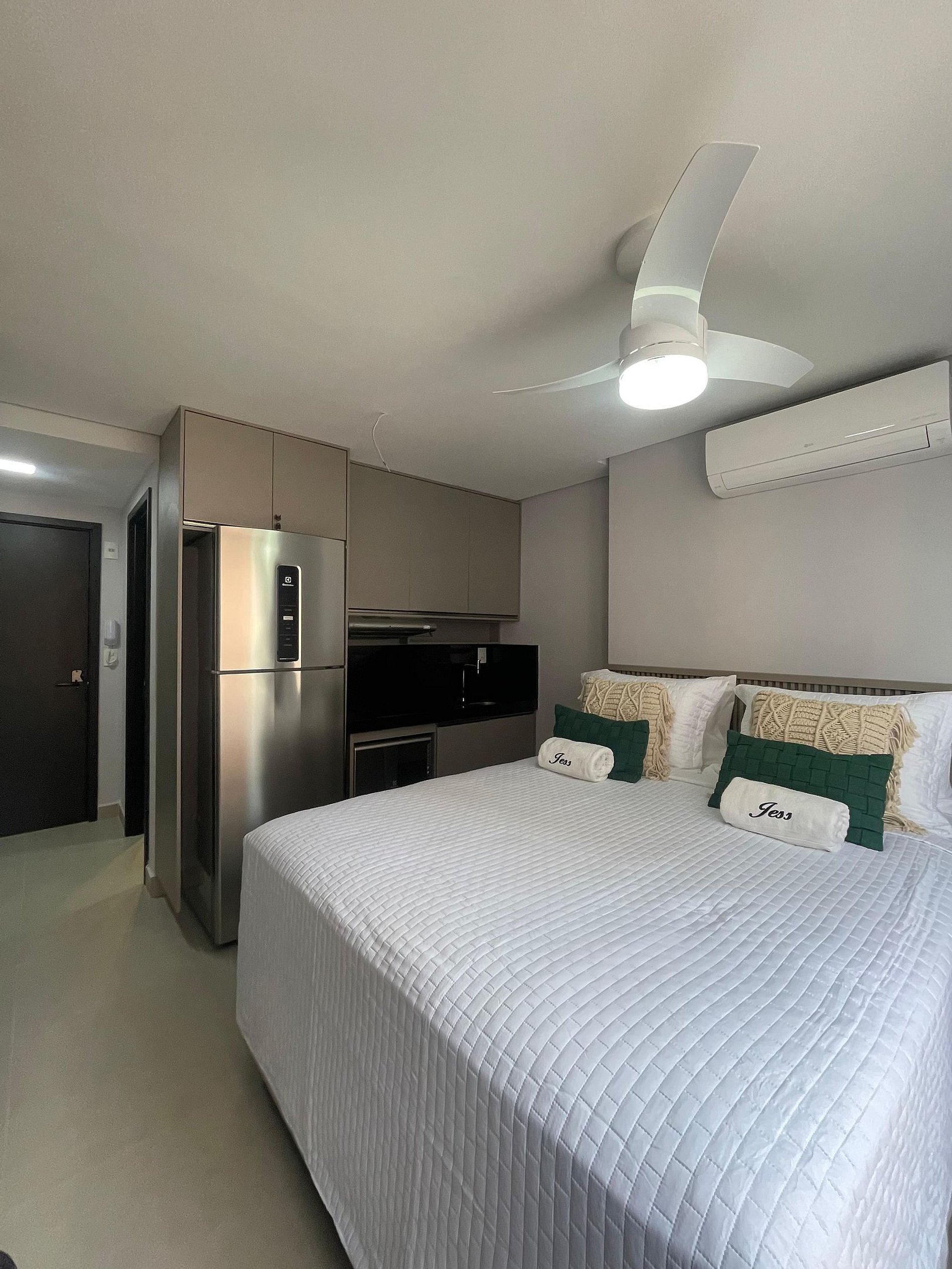 Aproveite a excelente estrutura do condomínio, que inclui piscina, academia, jardim, Wi-Fi gratuito e estacionamento rotativo. As unidades são completamente equipadas com ar-condicionado, cozinha moderna, além de banheiro privativo.