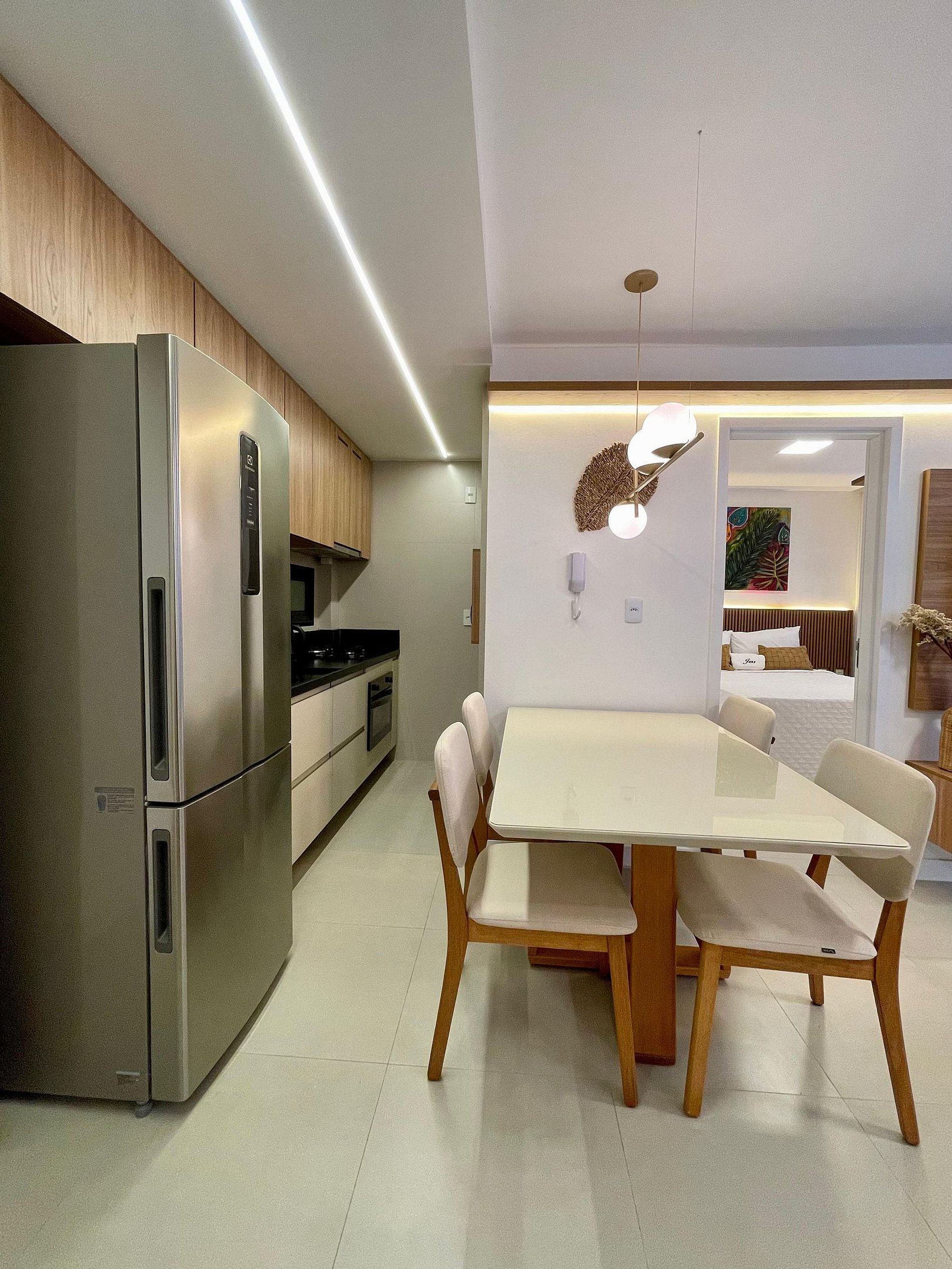 O apartamento é completo, com cozinha equipada (eletrodomésticos e utensílios) para preparar suas refeições com conforto.