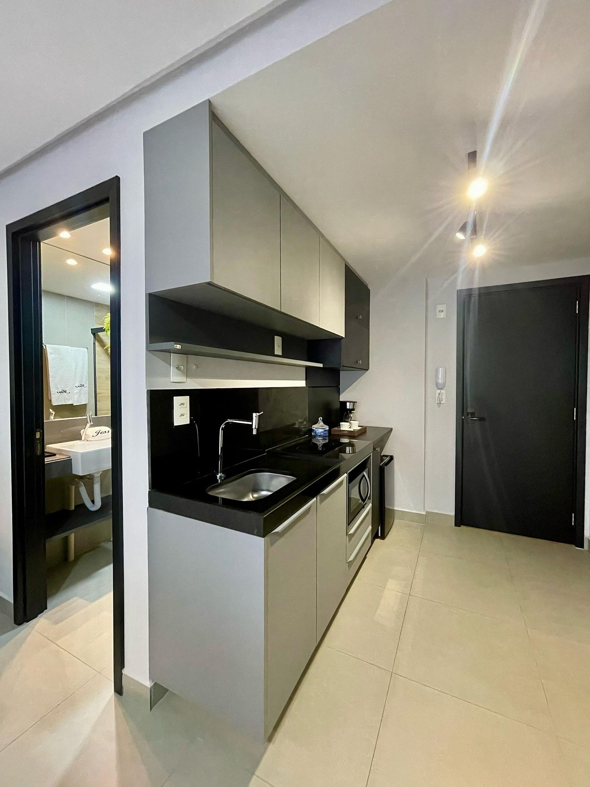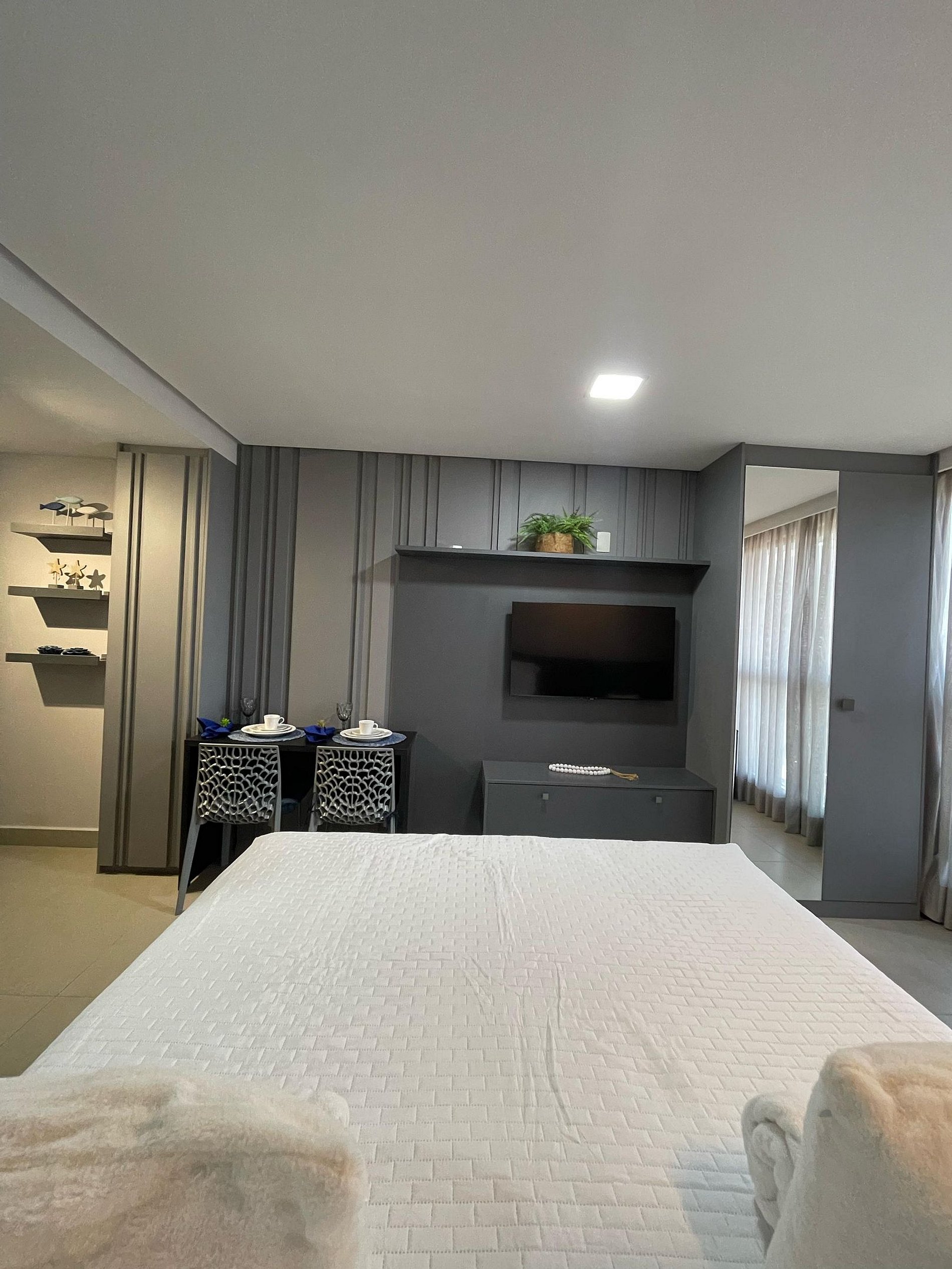 Aproveite a excelente estrutura do condomínio, que inclui piscina, academia, jardim, Wi-Fi gratuito e estacionamento rotativo. As unidades são completamente equipadas com ar-condicionado, cozinha moderna, além de banheiro privativo.