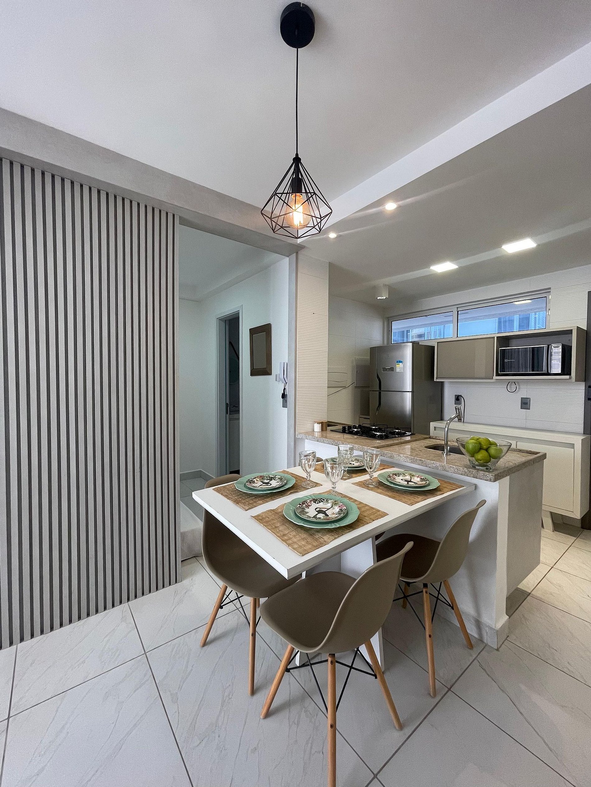 O apartamento é completo, com cozinha equipada (eletrodomésticos e utensílios) para preparar suas refeições com conforto.