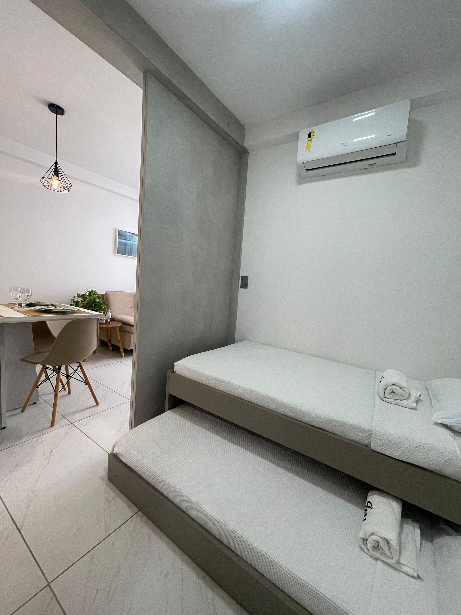Viva dias inesquecíveis neste charmoso e aconchegante apartamento com localização privilegiada — um verdadeiro pé na areia! O apartamento conta com uma suíte espaçosa, equipada com cama queen e TV, garantindo conforto e privacidade. O ambiente integrado oferece uma bicama, ideal para acomodar mais hóspedes com praticidade. A sala dispõe de um confortável sofá-cama, perfeito para momentos de descanso.