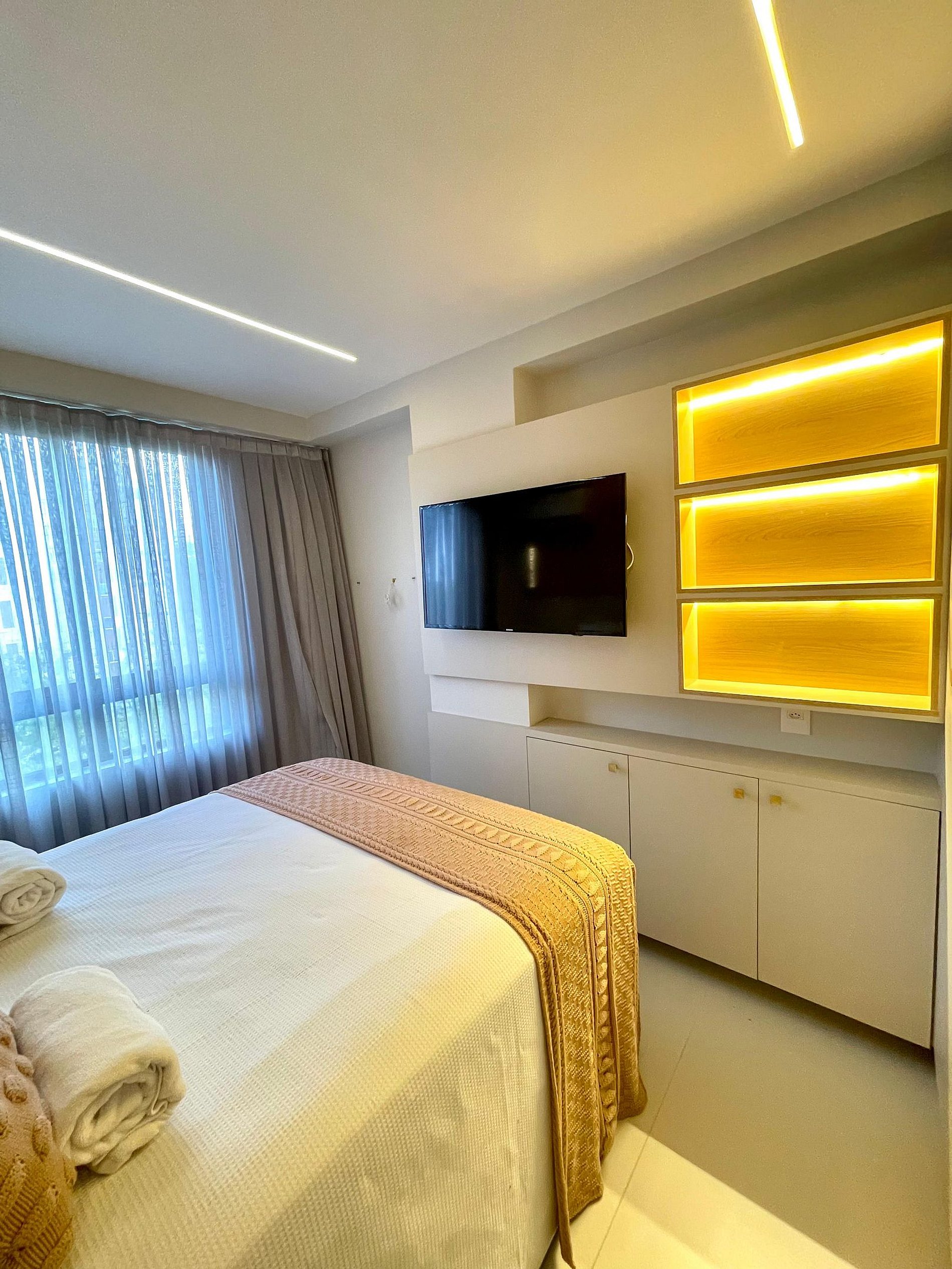 Espaço muito confortável, moderno, funcional. Com acesso a piscina, academia climatizada, cobertura com vista para o mar.