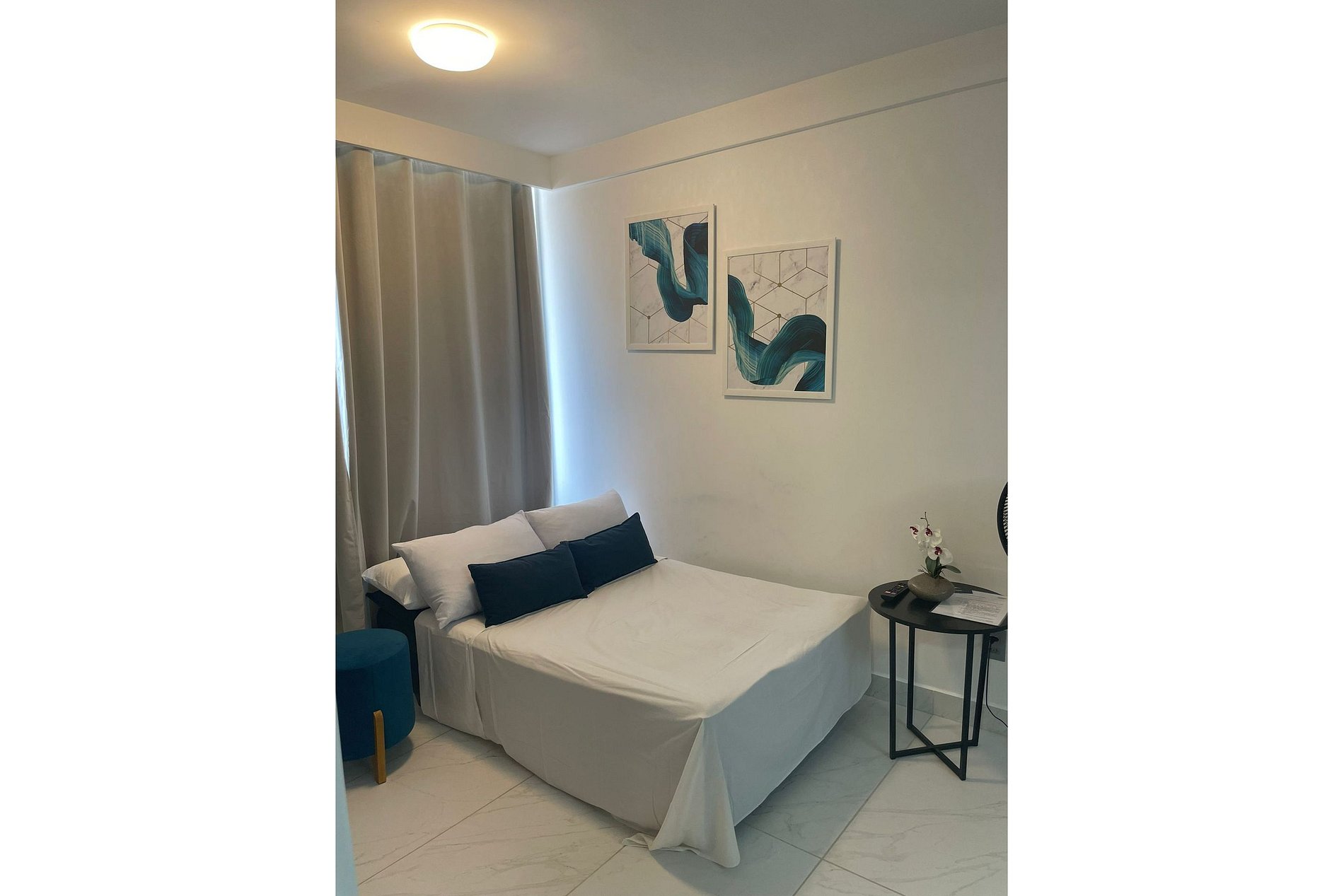 O apartamento oferece um quarto espaçoso com cama queen e TV, além de uma sala equipada com um sofá-cama confortável, ideal para acomodar até quatro pessoas. A cozinha é prática e totalmente equipada com utensílios para preparar suas refeições com facilidade. Para quem precisa trabalhar ou se manter conectado, o Wi-Fi é rápido e estável.