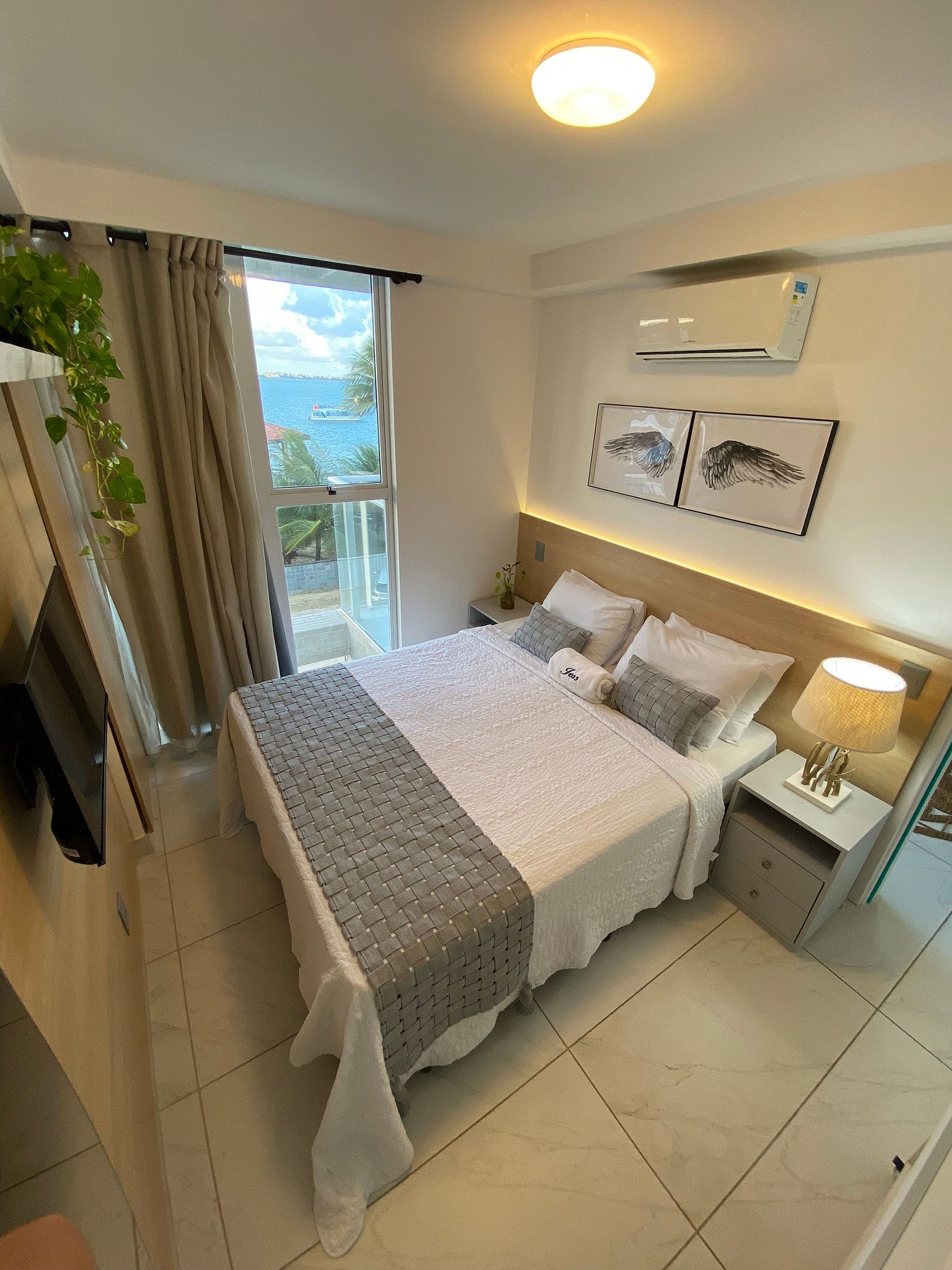 Desfrute de dias inesquecíveis neste lindo e aconchegante apartamento com localização privilegiada e pé na areia! Com vista lateral para o mar, a varanda com rede é o lugar ideal para relaxar ao som das ondas e sentir a brisa fresca do oceano.