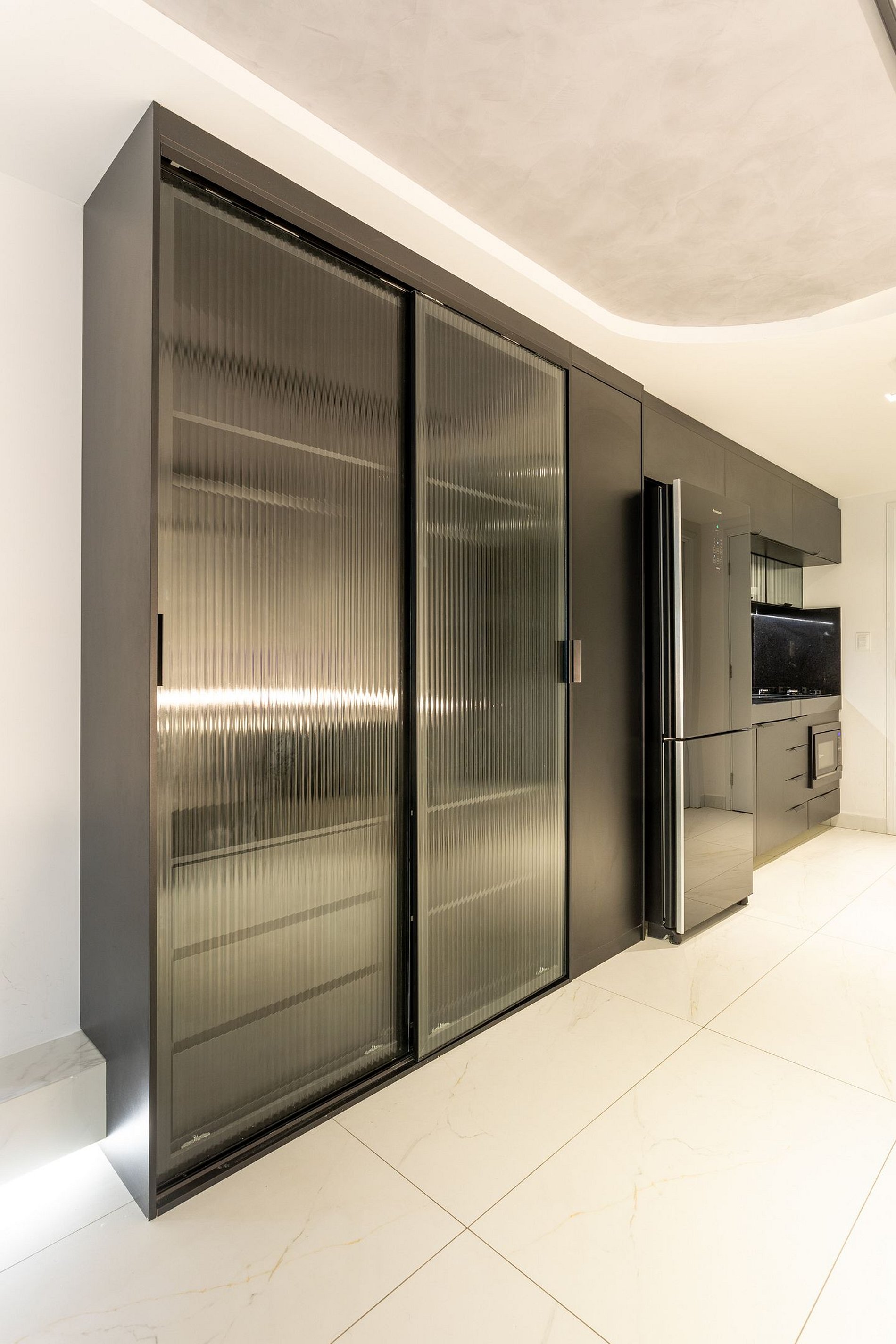 Um ambiente moderno, elegante e bem planejado, com decoração minimalista e acabamento premium — destaque para o design em preto e branco que traz um ar de loft urbano.