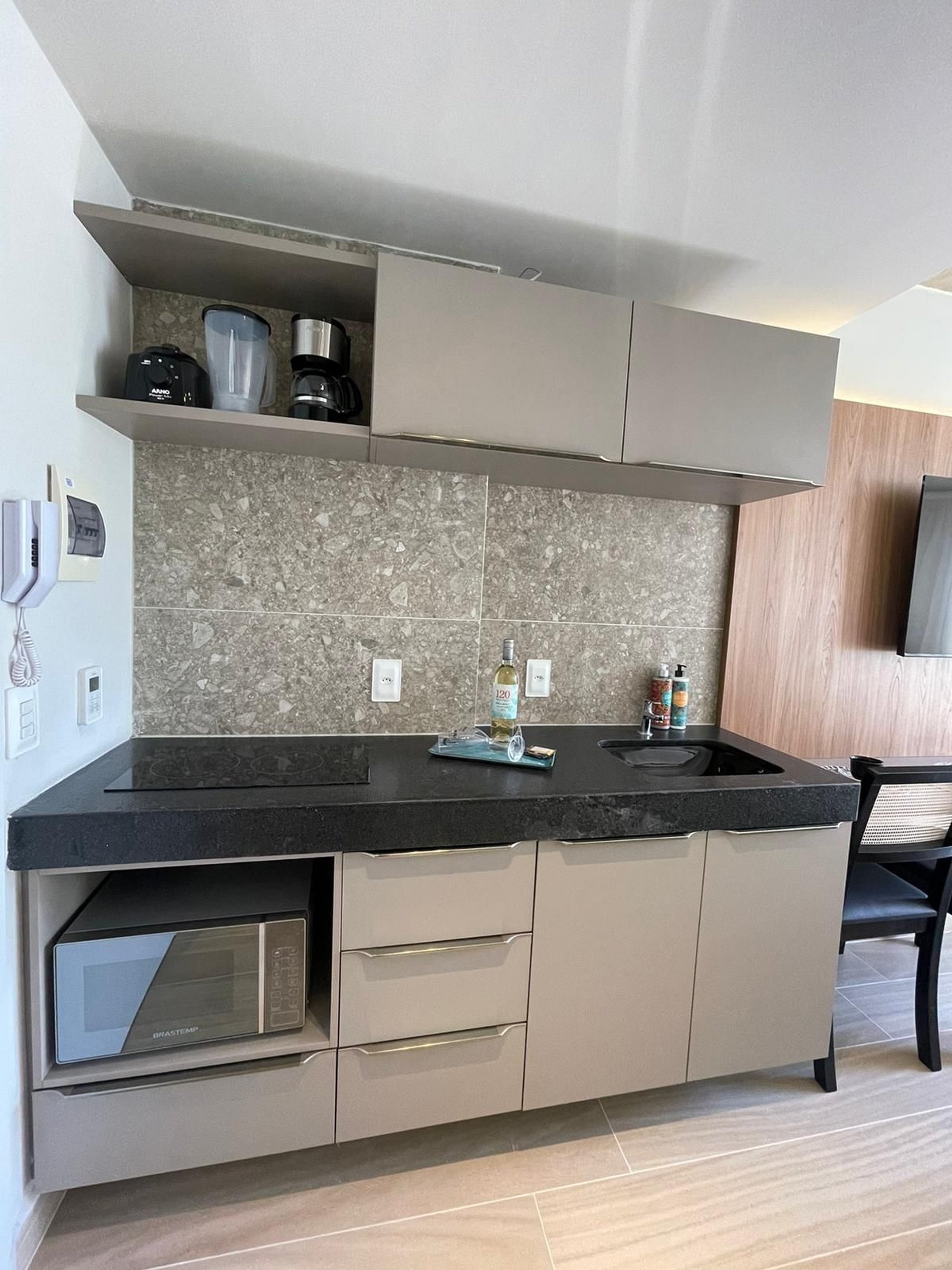 O apartamento é completo, com cozinha equipada (eletrodomésticos e utensílios) para preparar suas refeições com conforto.