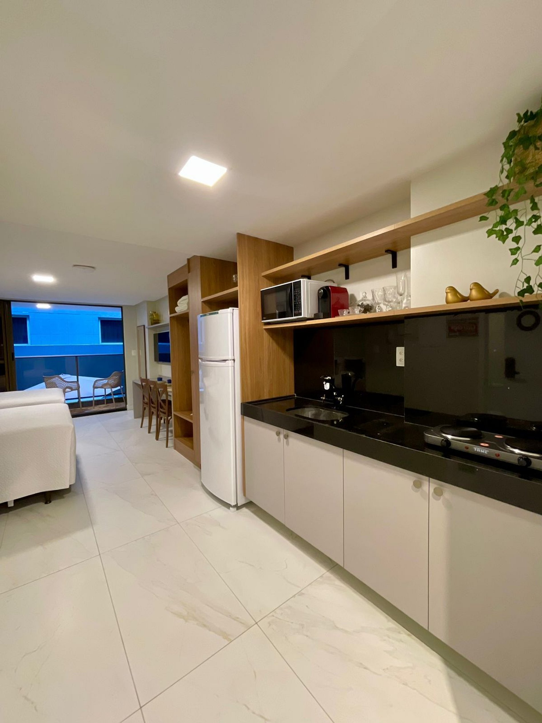 O apartamento é completo, com cozinha equipada (eletrodomésticos e utensílios) para preparar suas refeições com conforto.