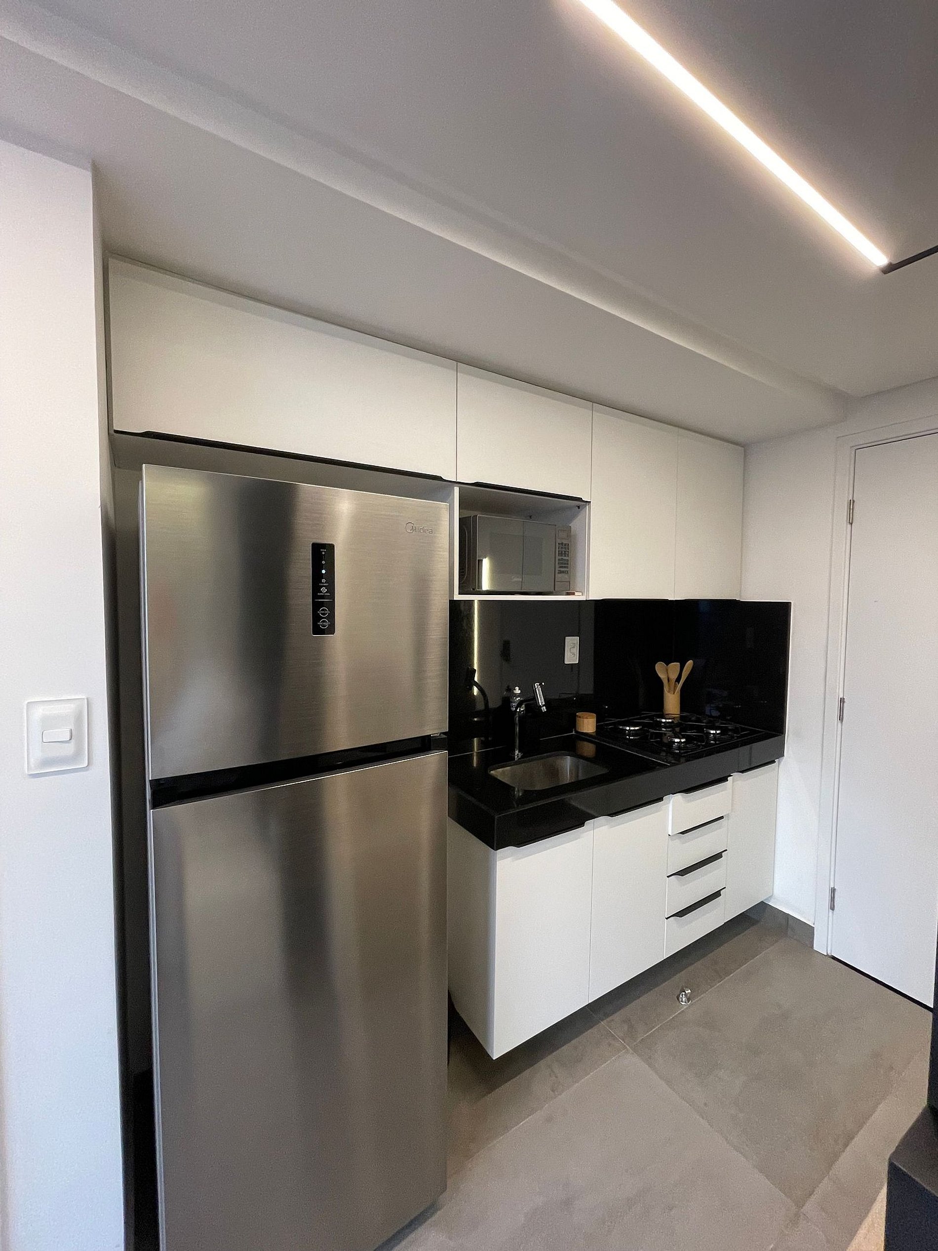 Deixamos itens iniciais (papel higiênico, detergente, pano de prato etc.) para sua chegada.