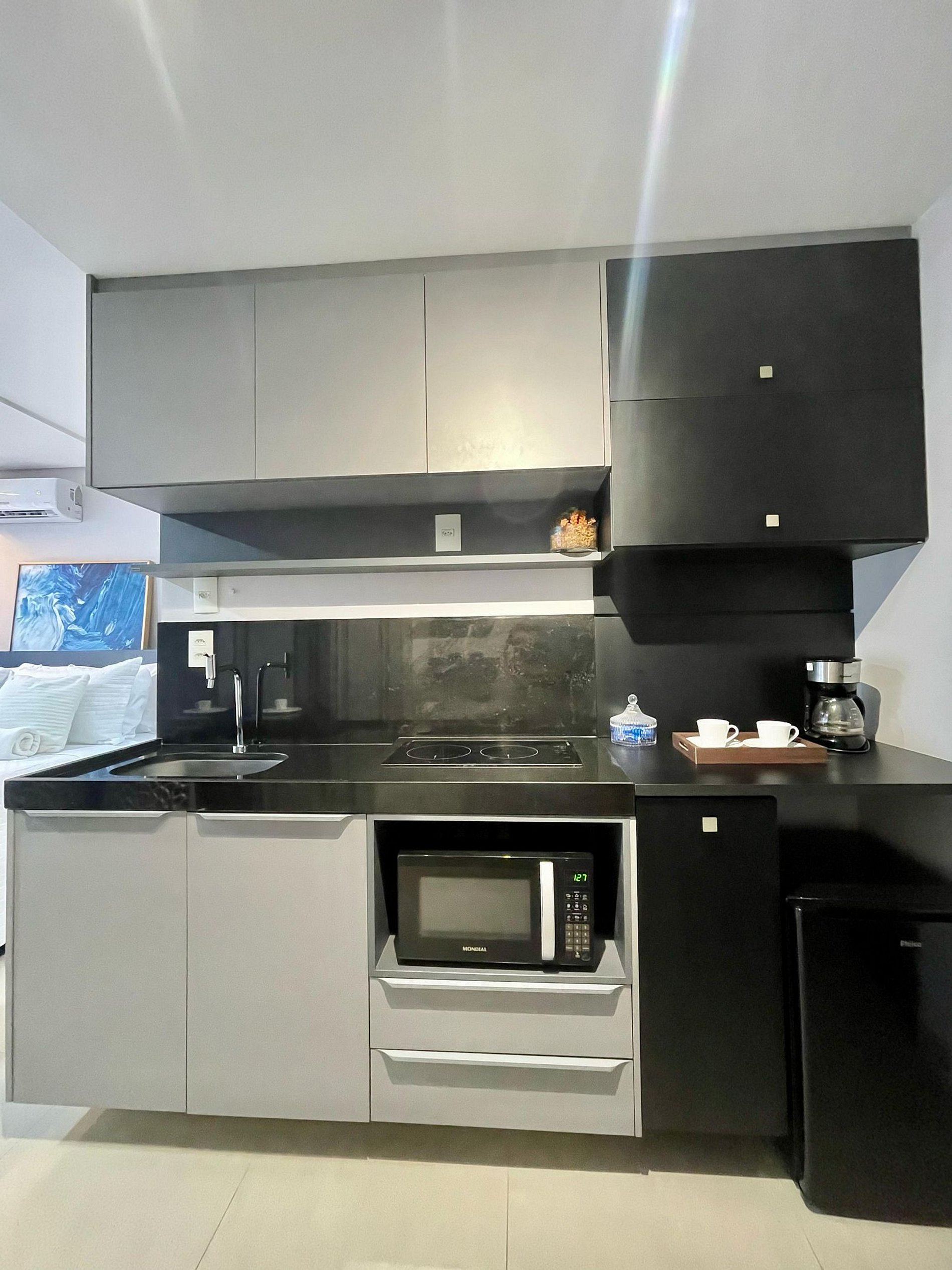 Aproveite a excelente estrutura do condomínio, que inclui piscina, academia, jardim, Wi-Fi gratuito e estacionamento rotativo. As unidades são completamente equipadas com ar-condicionado, cozinha moderna, além de banheiro privativo.