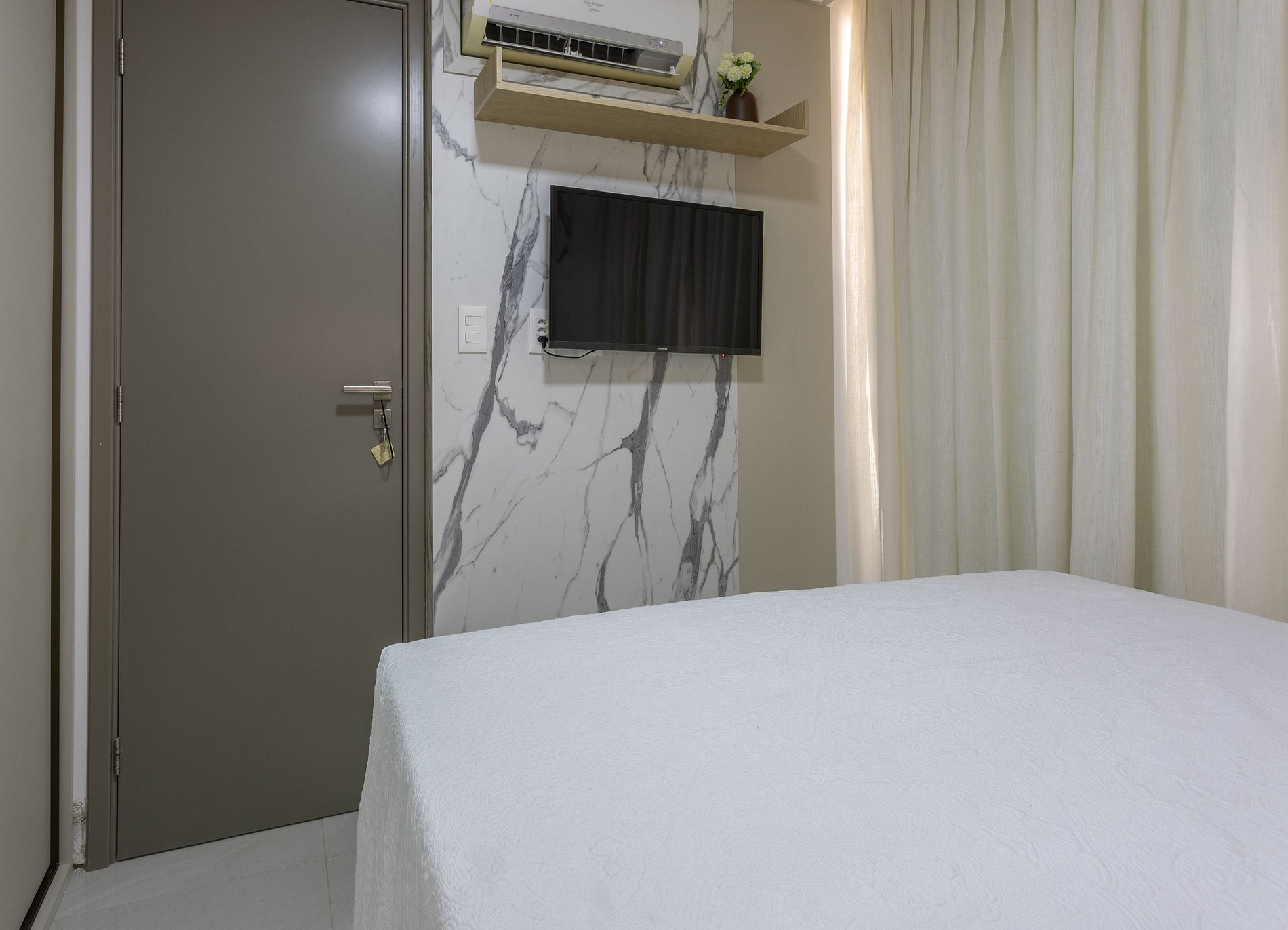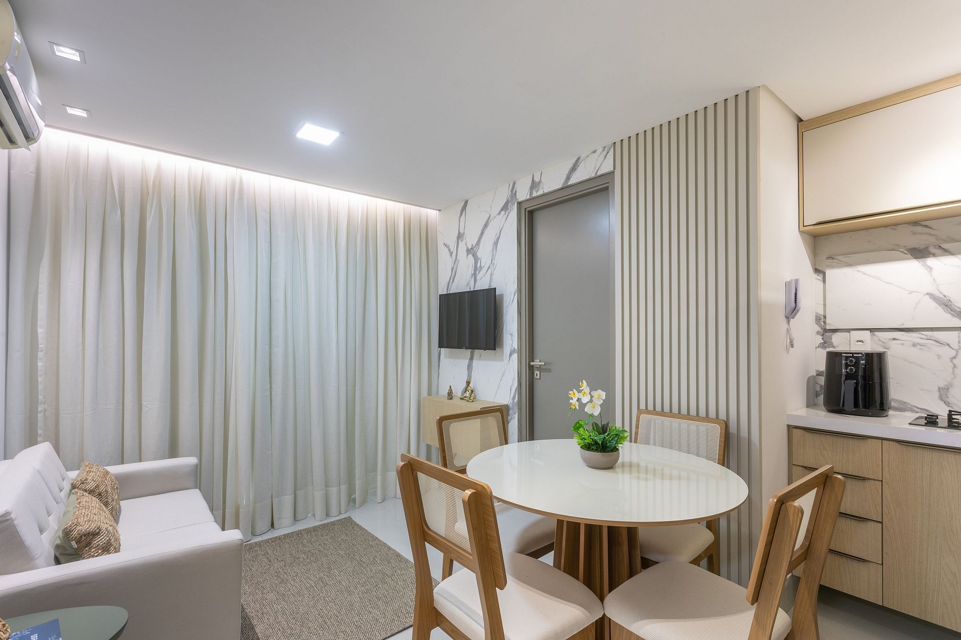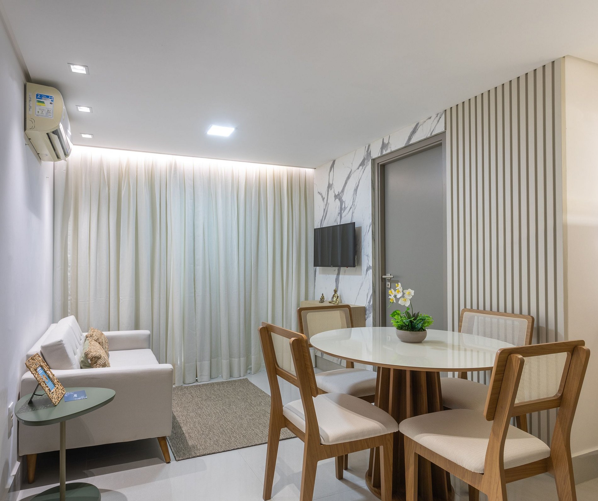 - O flat é super funcional com uma suíte e um quarto duplo.