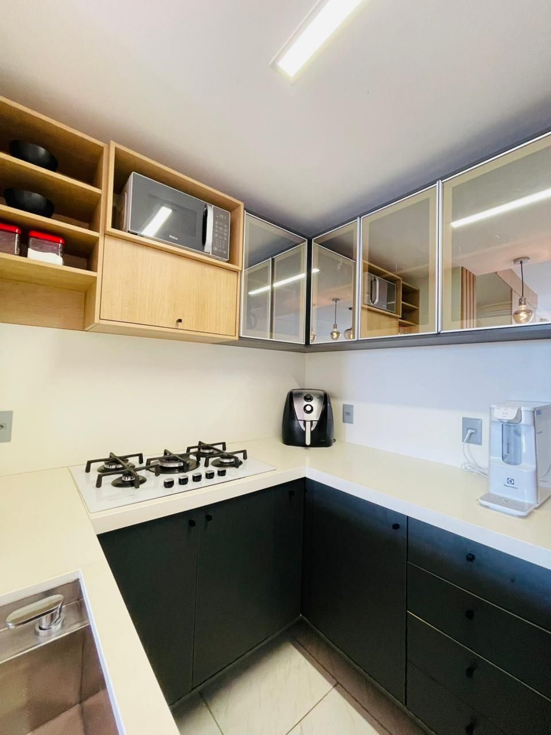 Deixamos itens iniciais (papel higiênico, detergente, pano de prato etc.) para sua chegada.