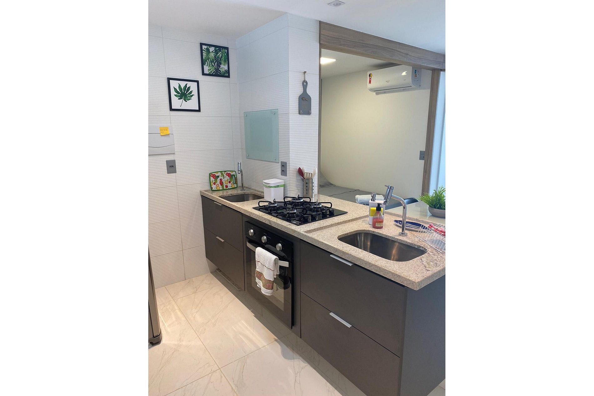 Deixamos itens iniciais (papel higiênico, detergente, pano de prato etc.) para sua chegada.