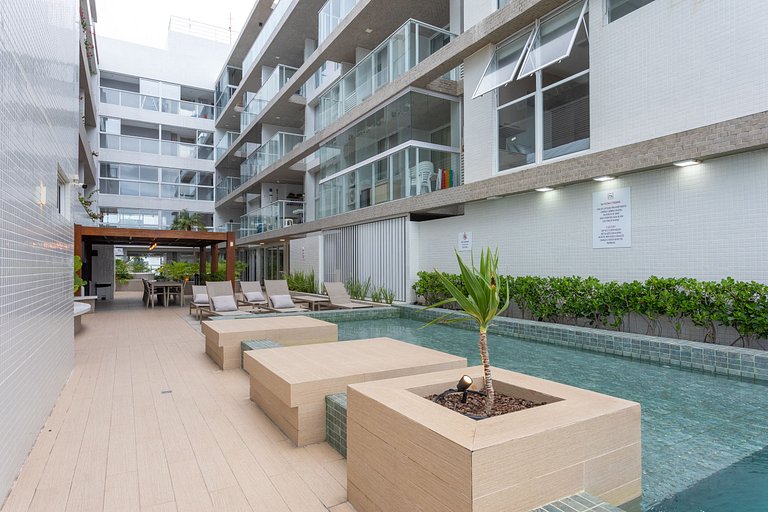 • Cobertura que possui banheira privativa, ideal para relaxar após um dia de praia.