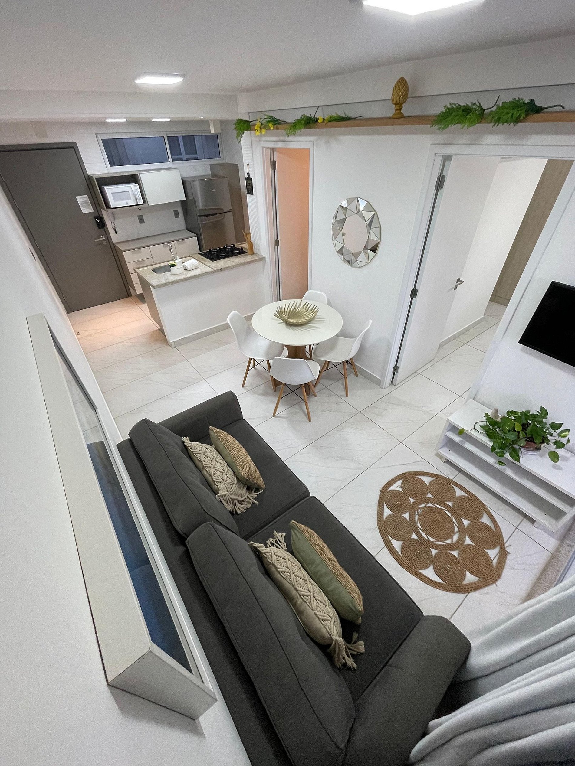 O apartamento é completo, com cozinha equipada (eletrodomésticos e utensílios) para preparar suas refeições com conforto.
