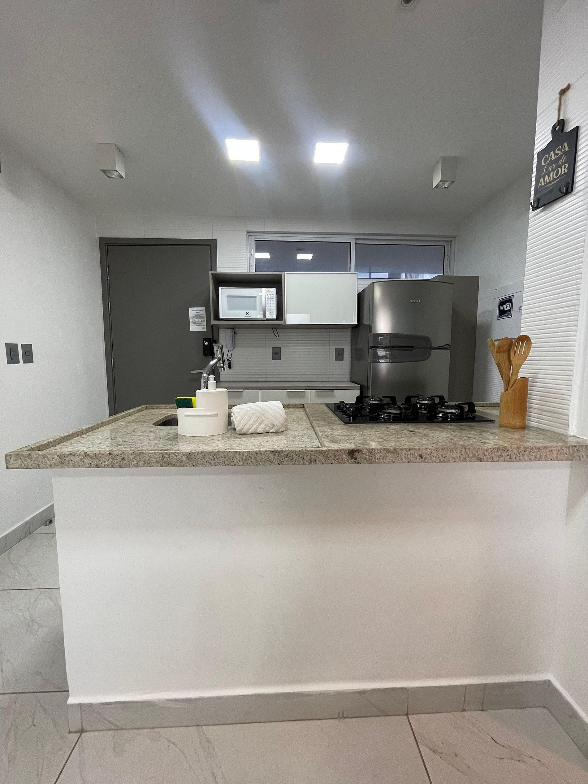 Deixamos itens iniciais (papel higiênico, detergente, pano de prato etc.) para sua chegada.