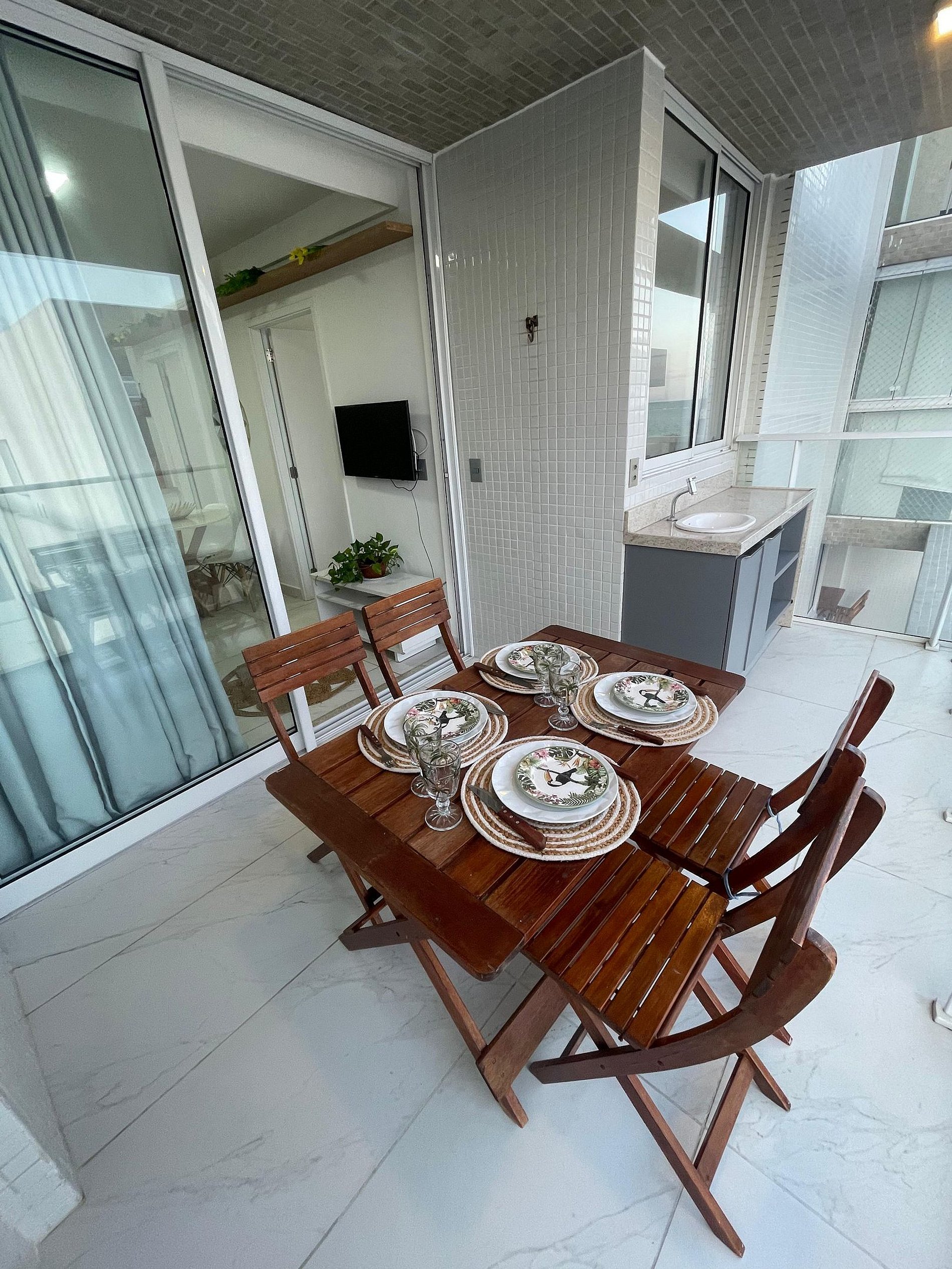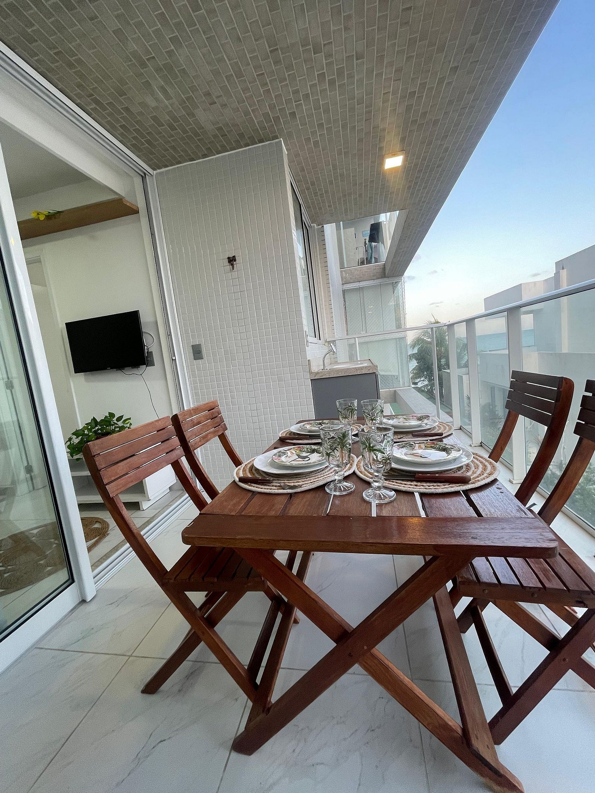 • Varanda espaçosa, um convite para relaxar, tomar um drink ou simplesmente curtir a brisa do mar ao som das ondas.