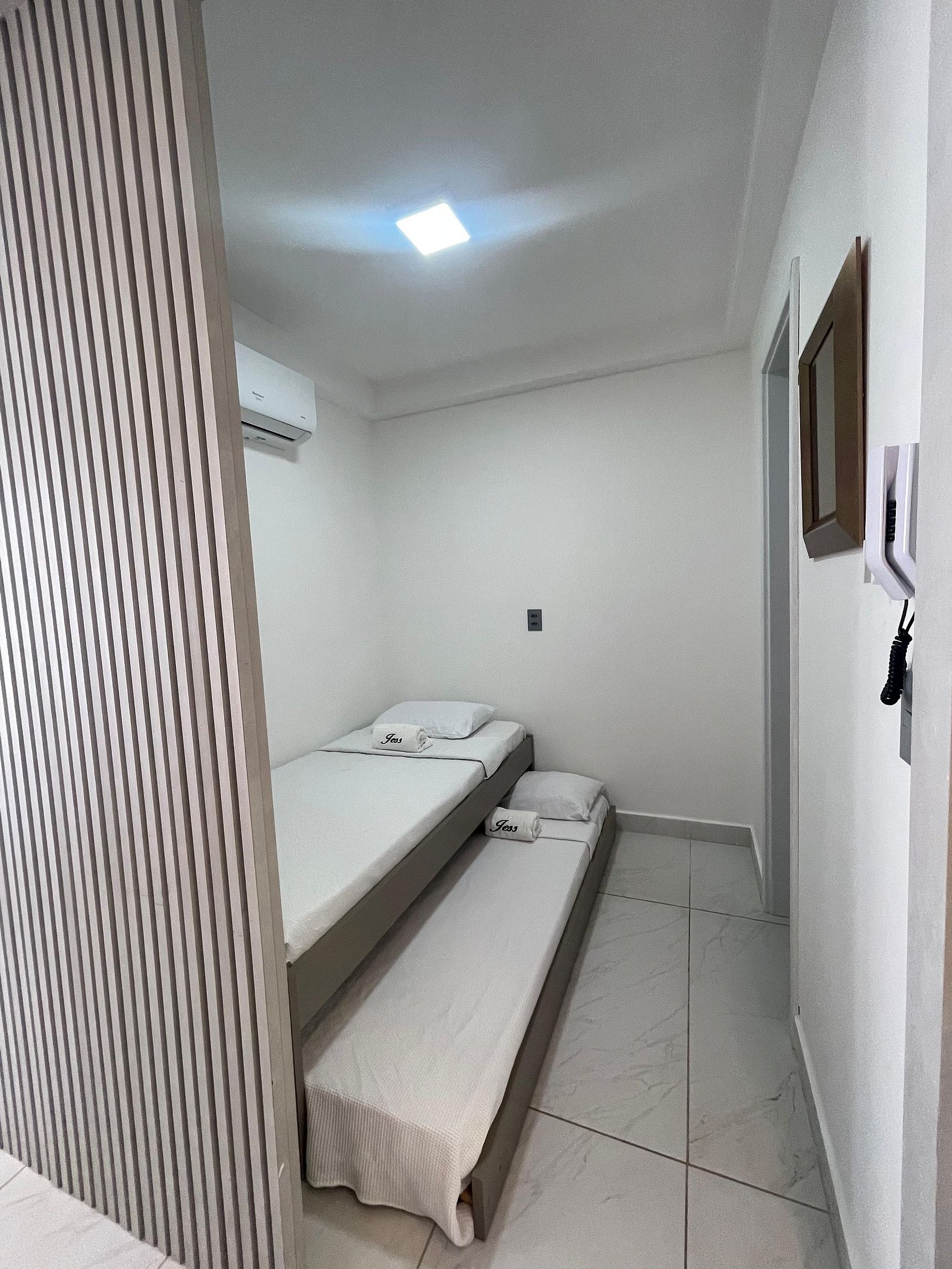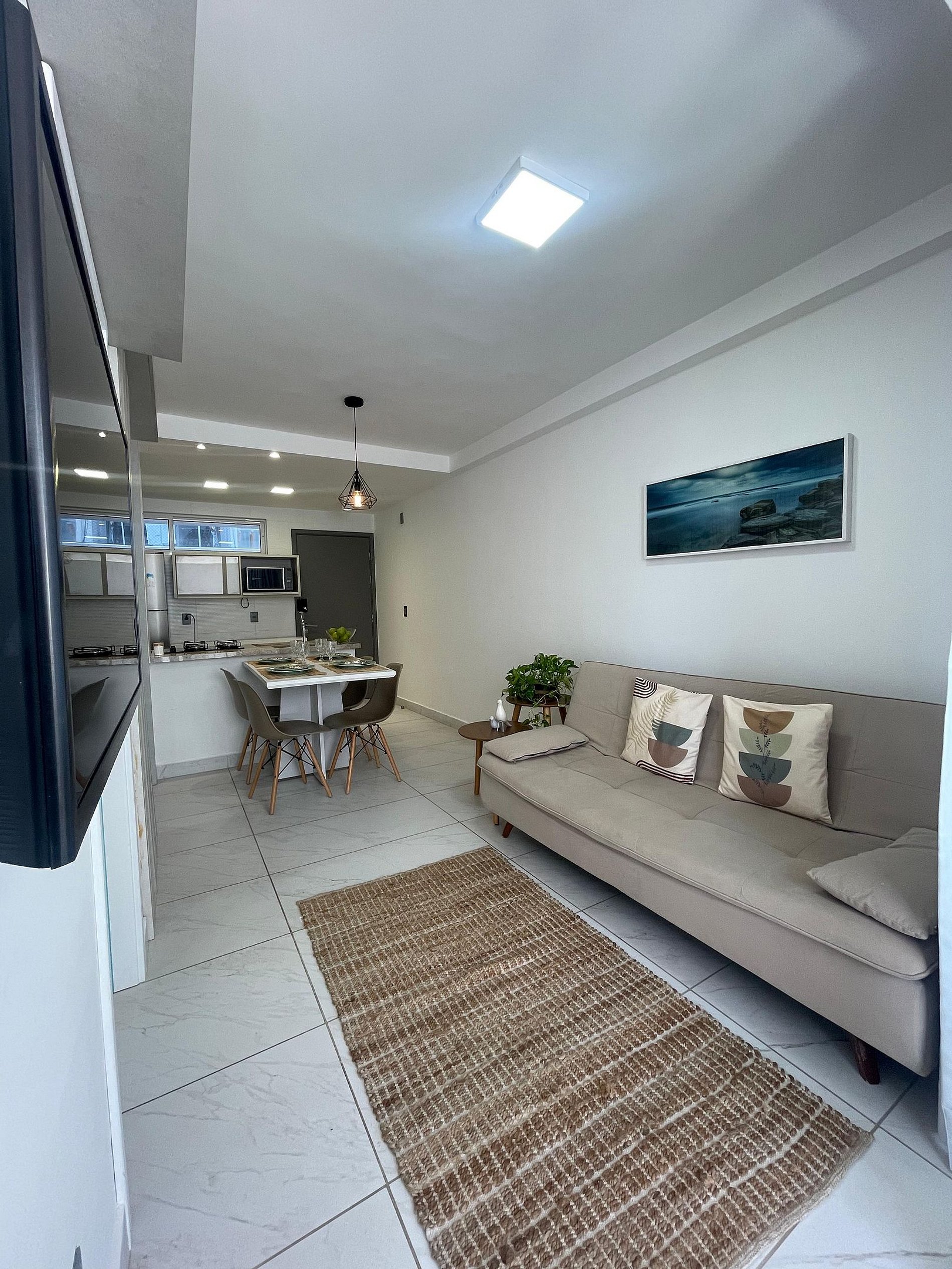 Viva dias inesquecíveis neste charmoso e aconchegante apartamento com localização privilegiada — um verdadeiro pé na areia! O apartamento conta com uma suíte espaçosa, equipada com cama queen e TV, garantindo conforto e privacidade. O ambiente integrado oferece uma bicama, ideal para acomodar mais hóspedes com praticidade. A sala dispõe de um confortável sofá-cama, perfeito para momentos de descanso.
