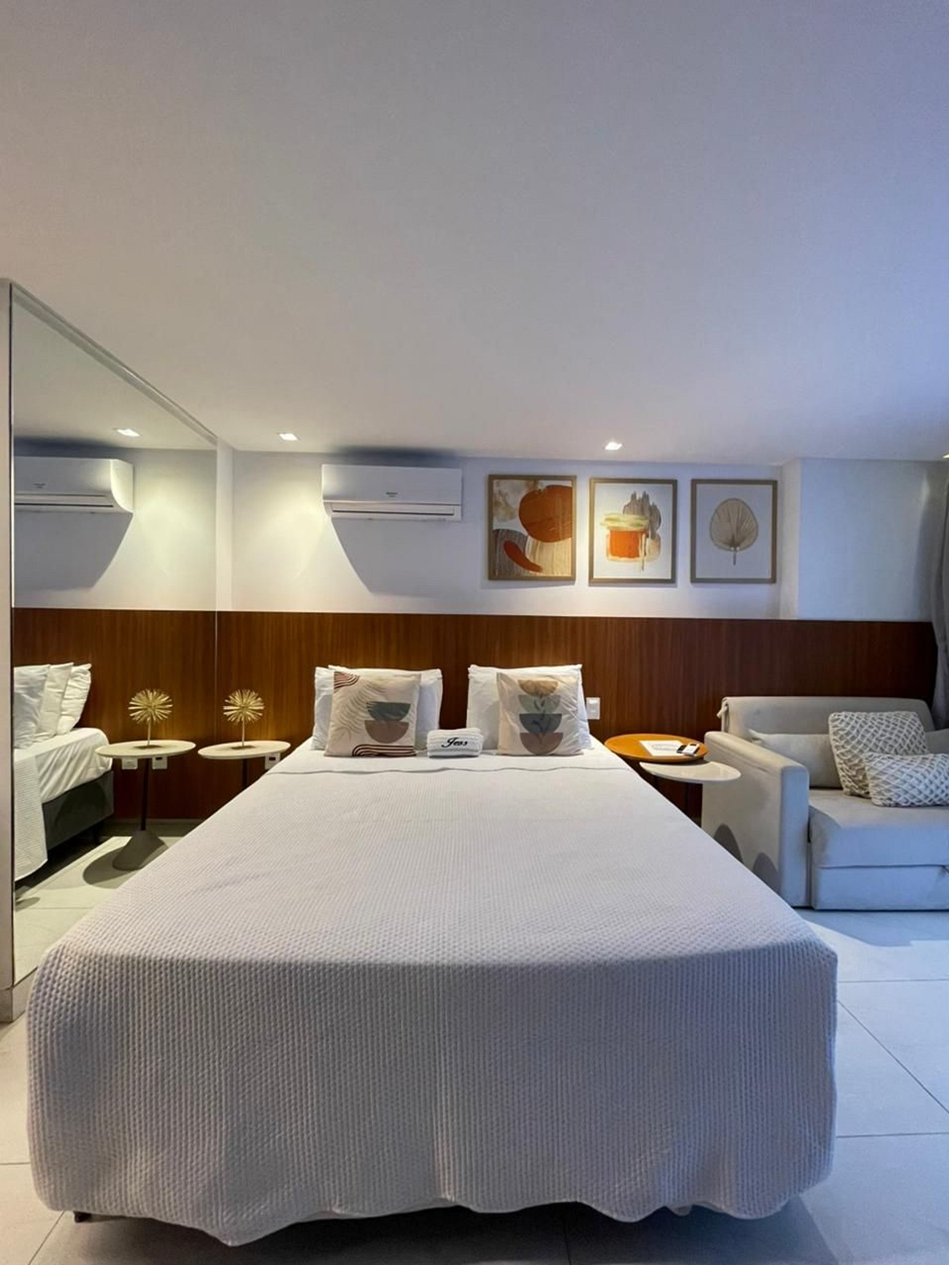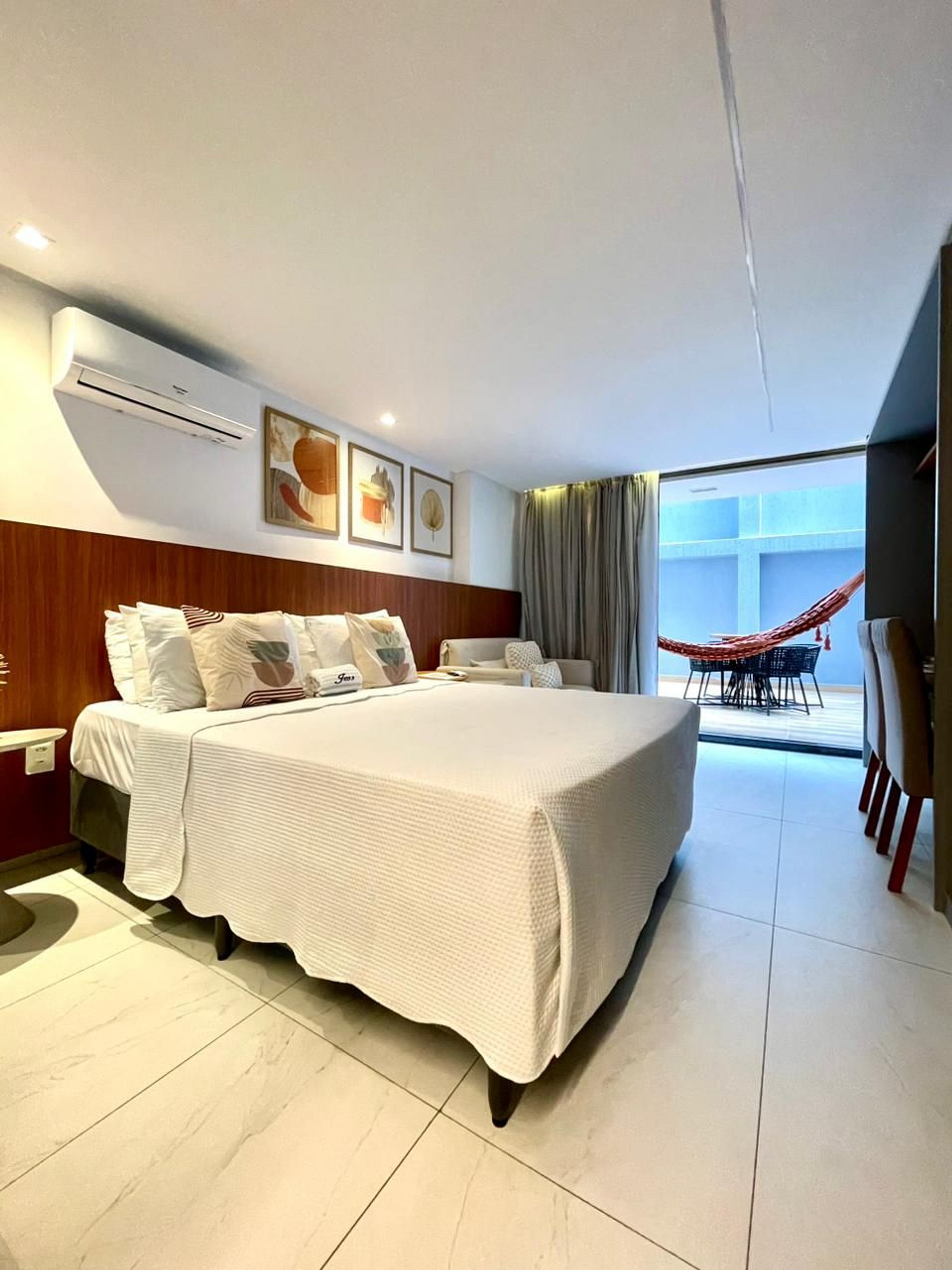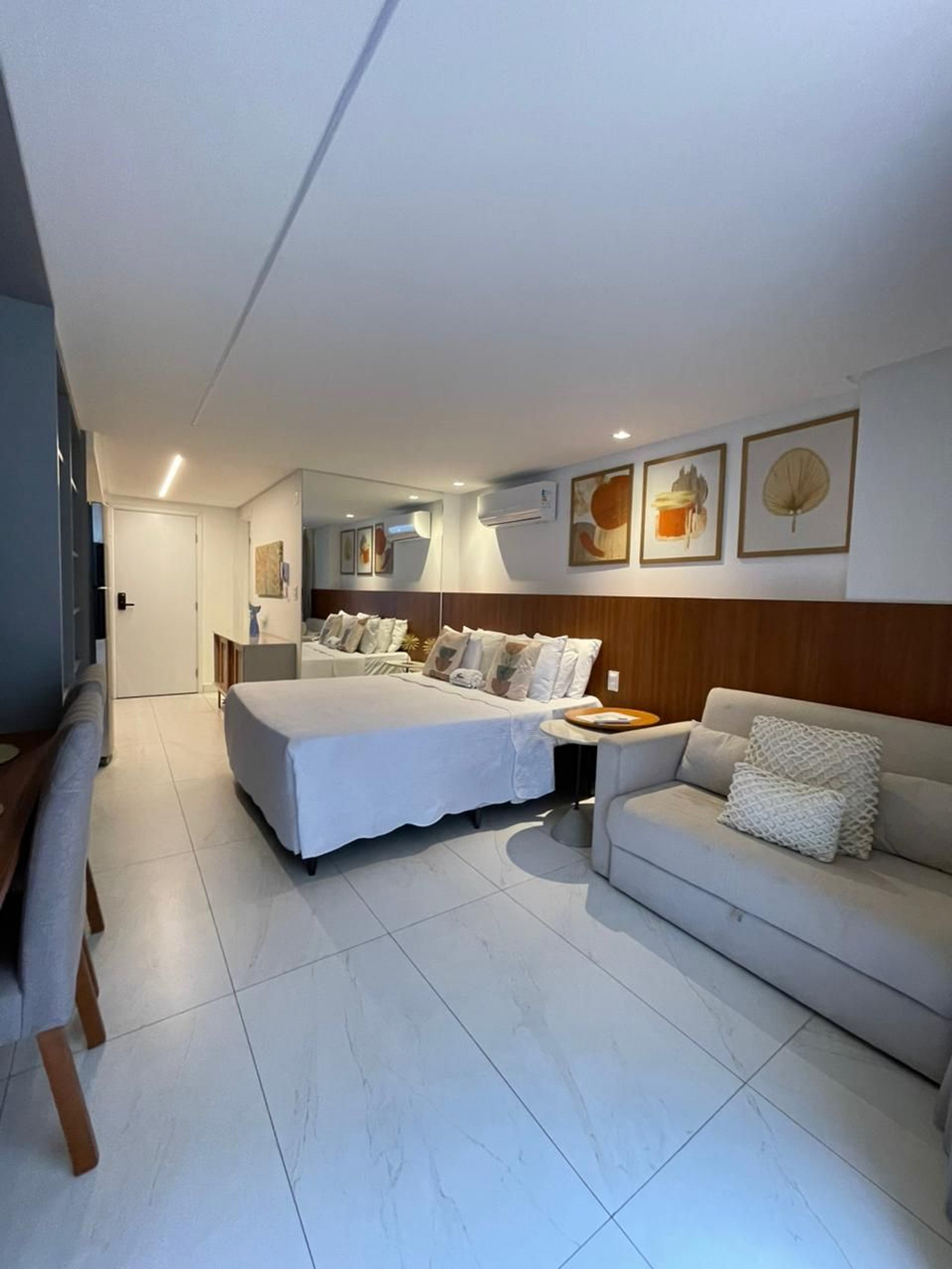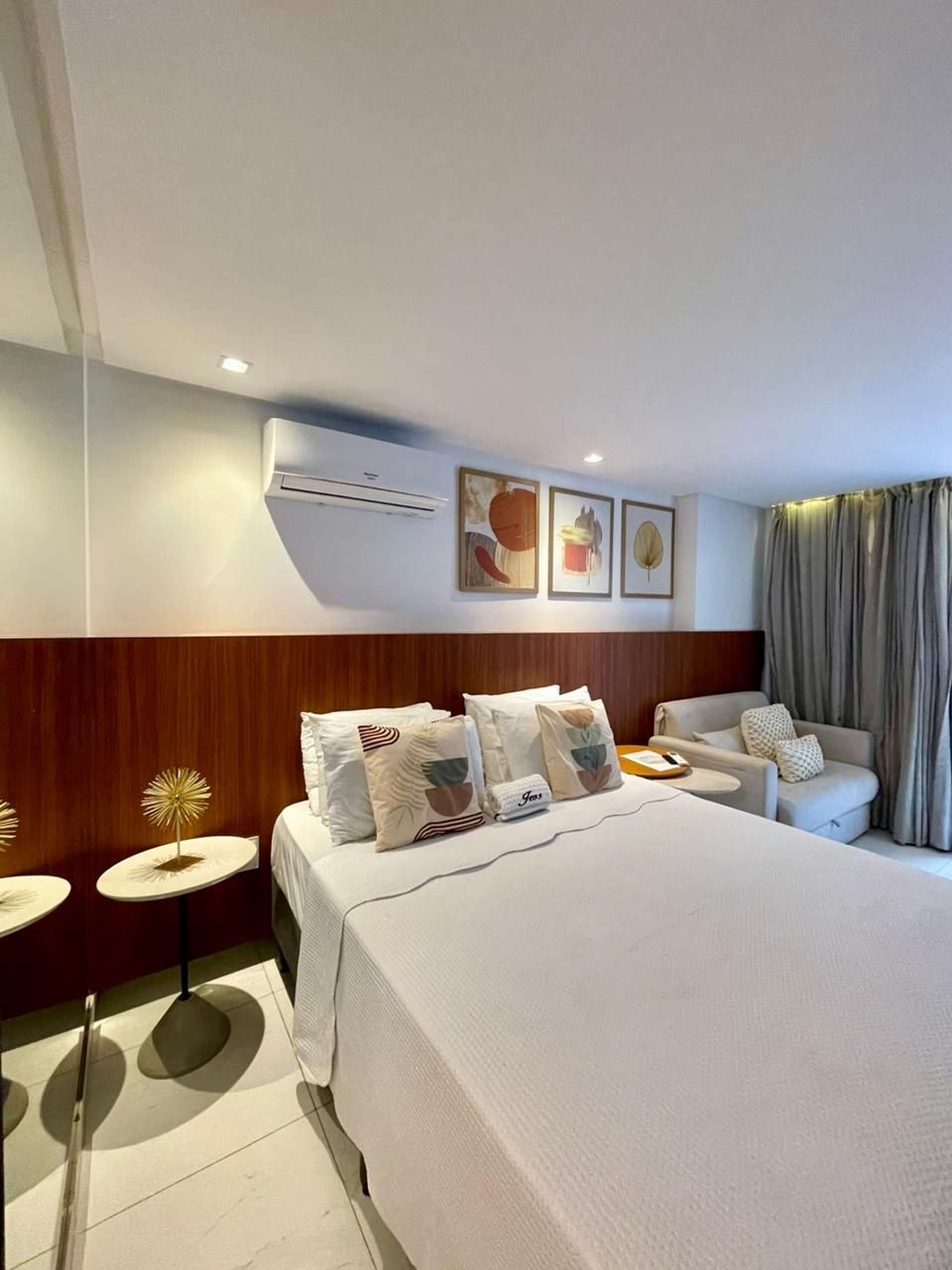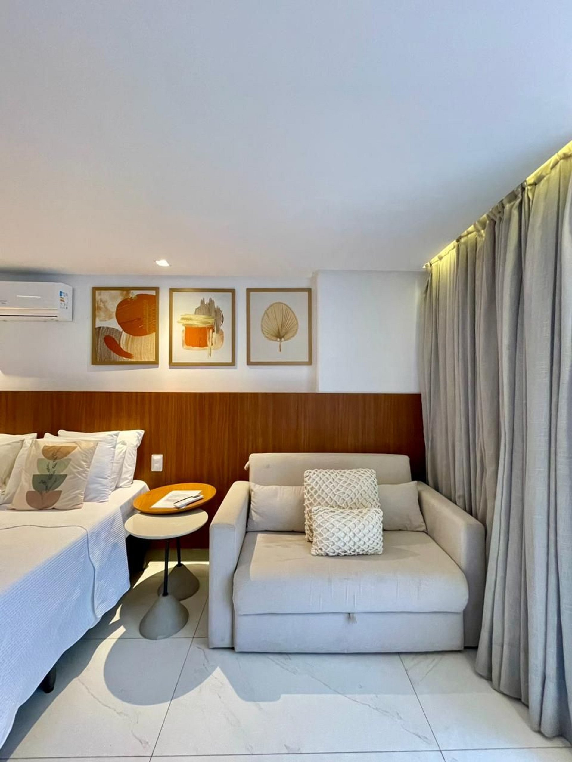 Com um toque moderno, acolhedor e espaçoso, este flat foi pensado para quem deseja se sentir em casa, mesmo longe dela. Seus ambientes bem planejados e a decoração leve e charmosa criam o cenário perfeito para relaxar e aproveitar cada instante com tranquilidade.