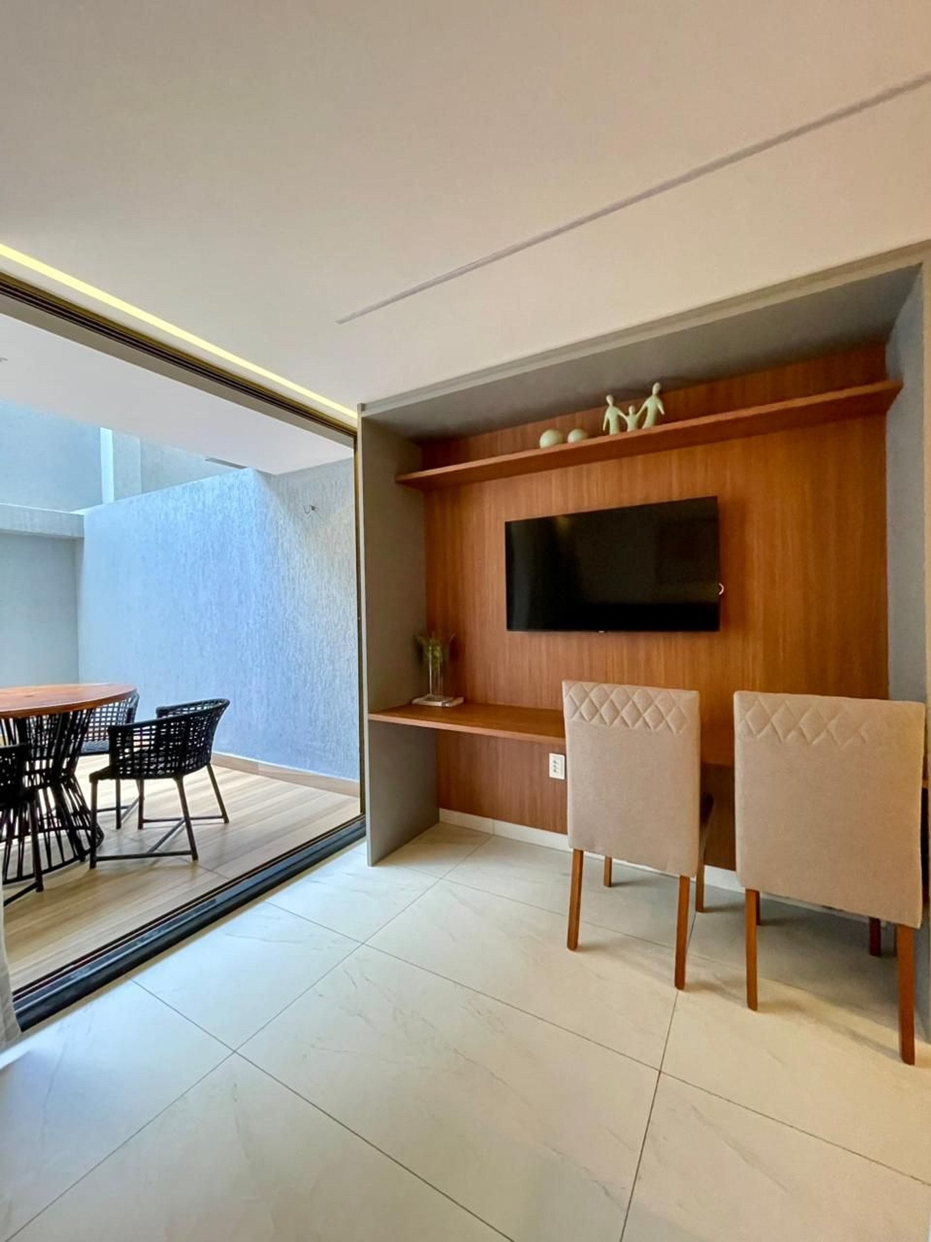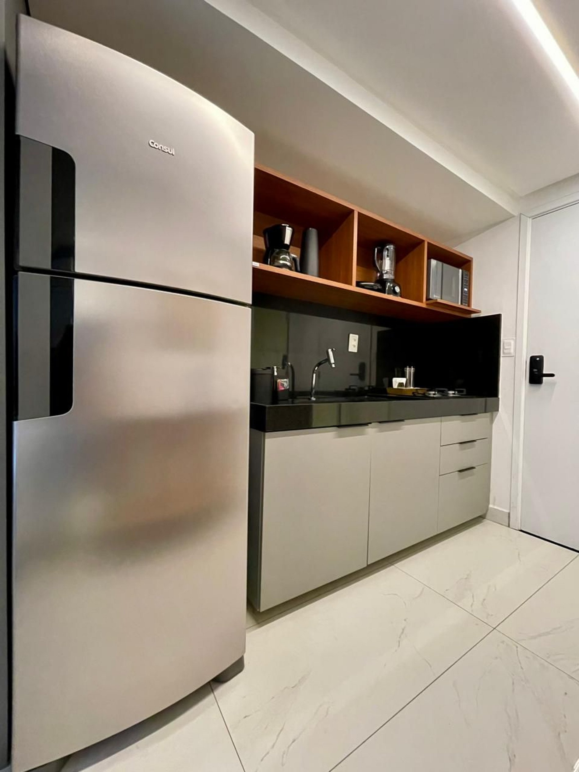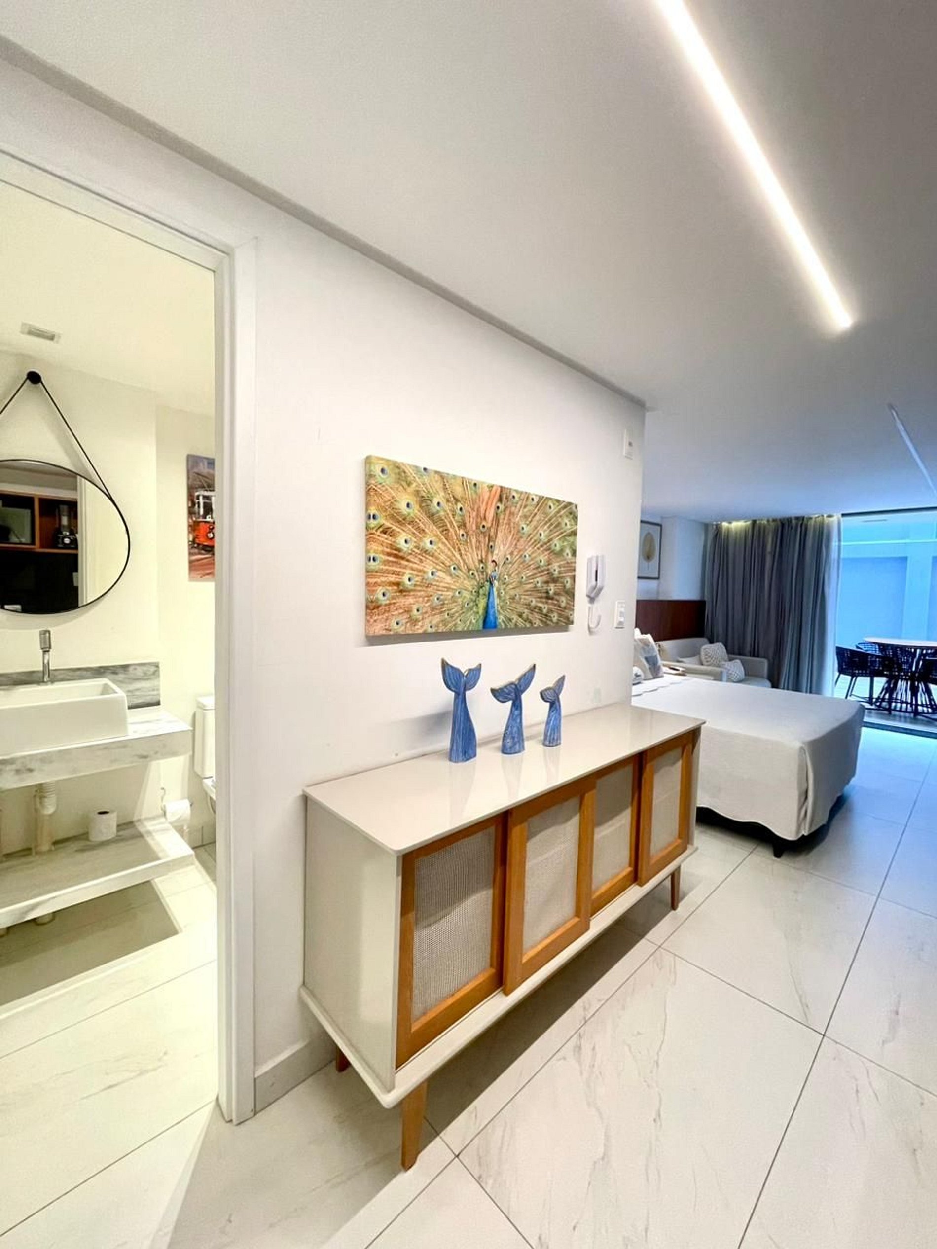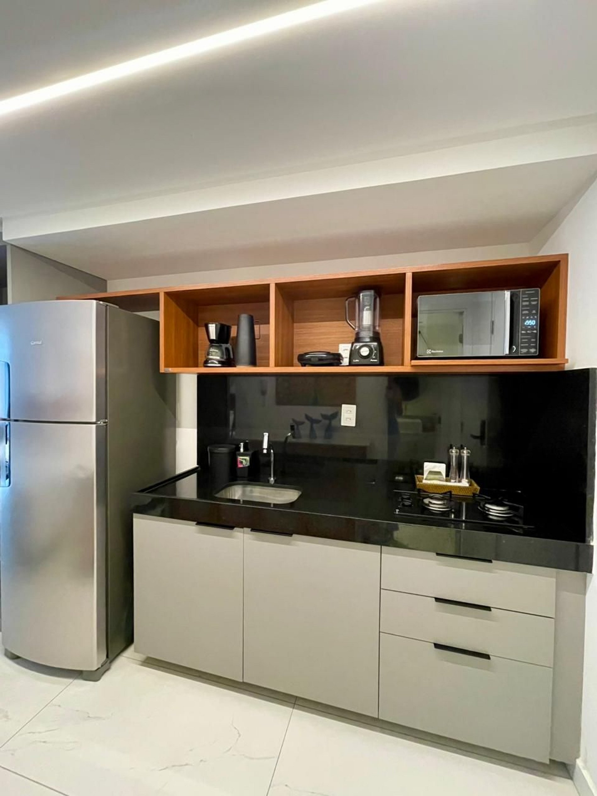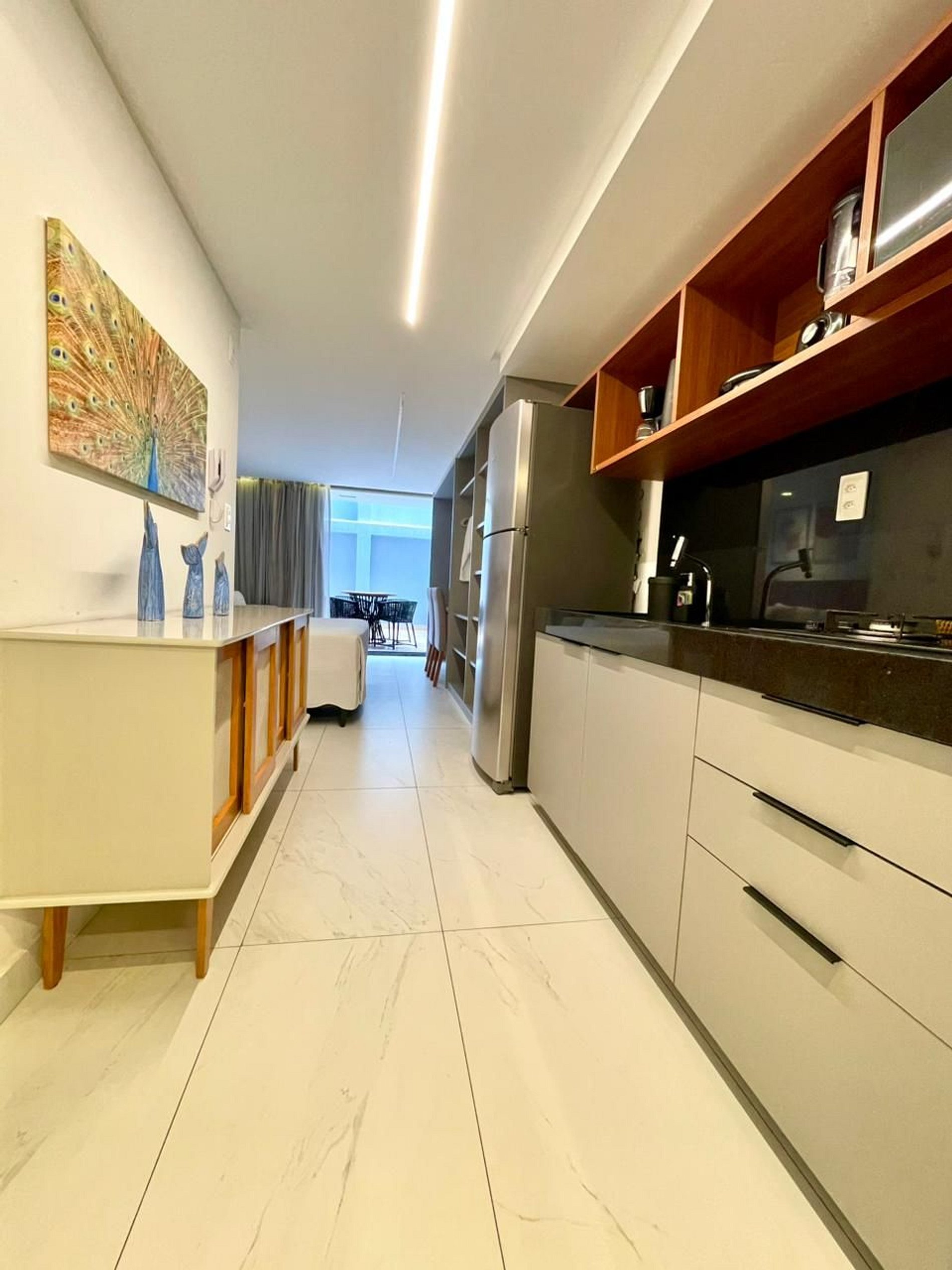 Com um toque moderno, acolhedor e espaçoso, este flat foi pensado para quem deseja se sentir em casa, mesmo longe dela. Seus ambientes bem planejados e a decoração leve e charmosa criam o cenário perfeito para relaxar e aproveitar cada instante com tranquilidade.