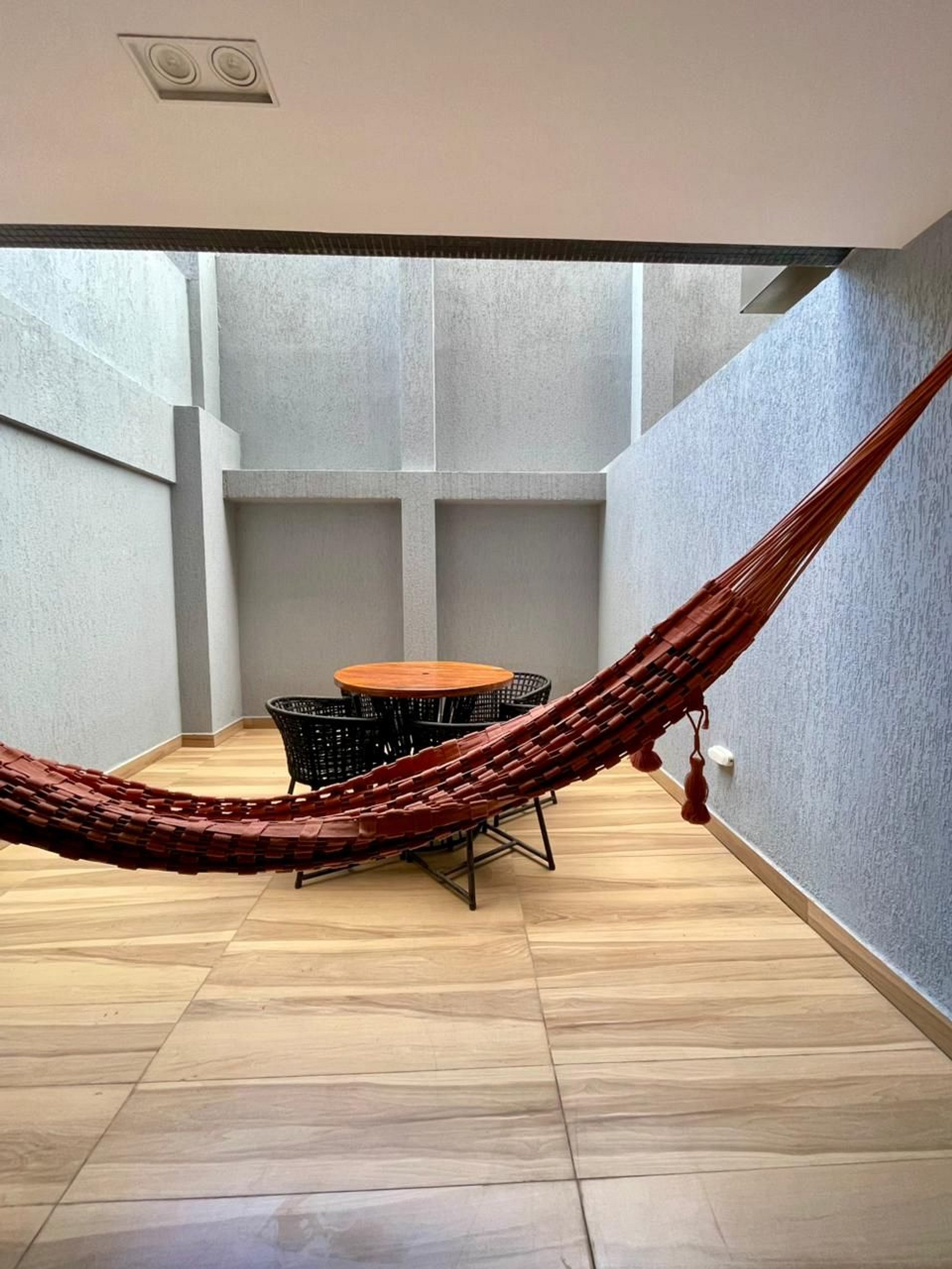 • Varanda espaçosa e arejada, com mesa e cadeiras — perfeita para refeições ao ar livre ou apenas relaxar na rede.