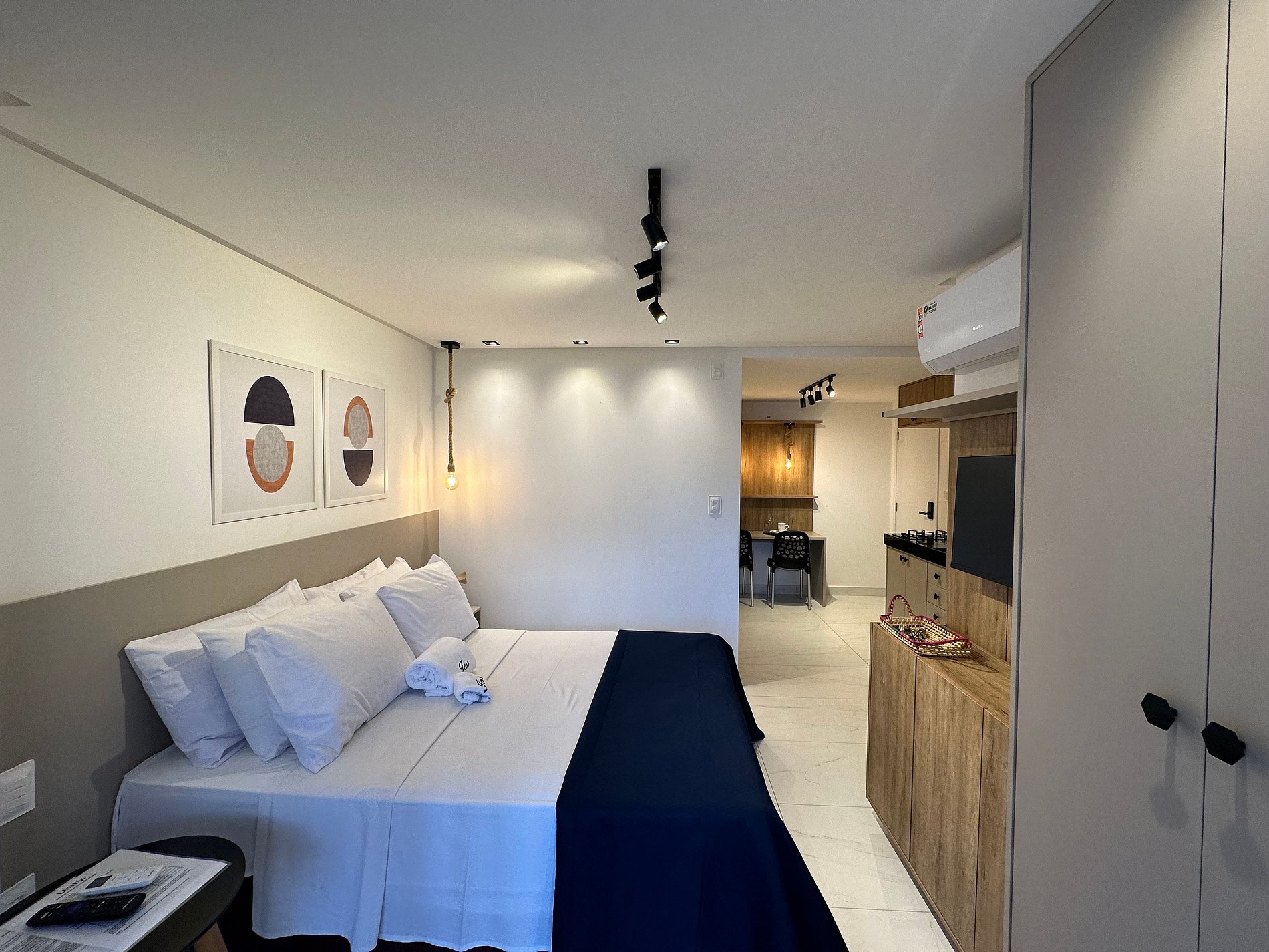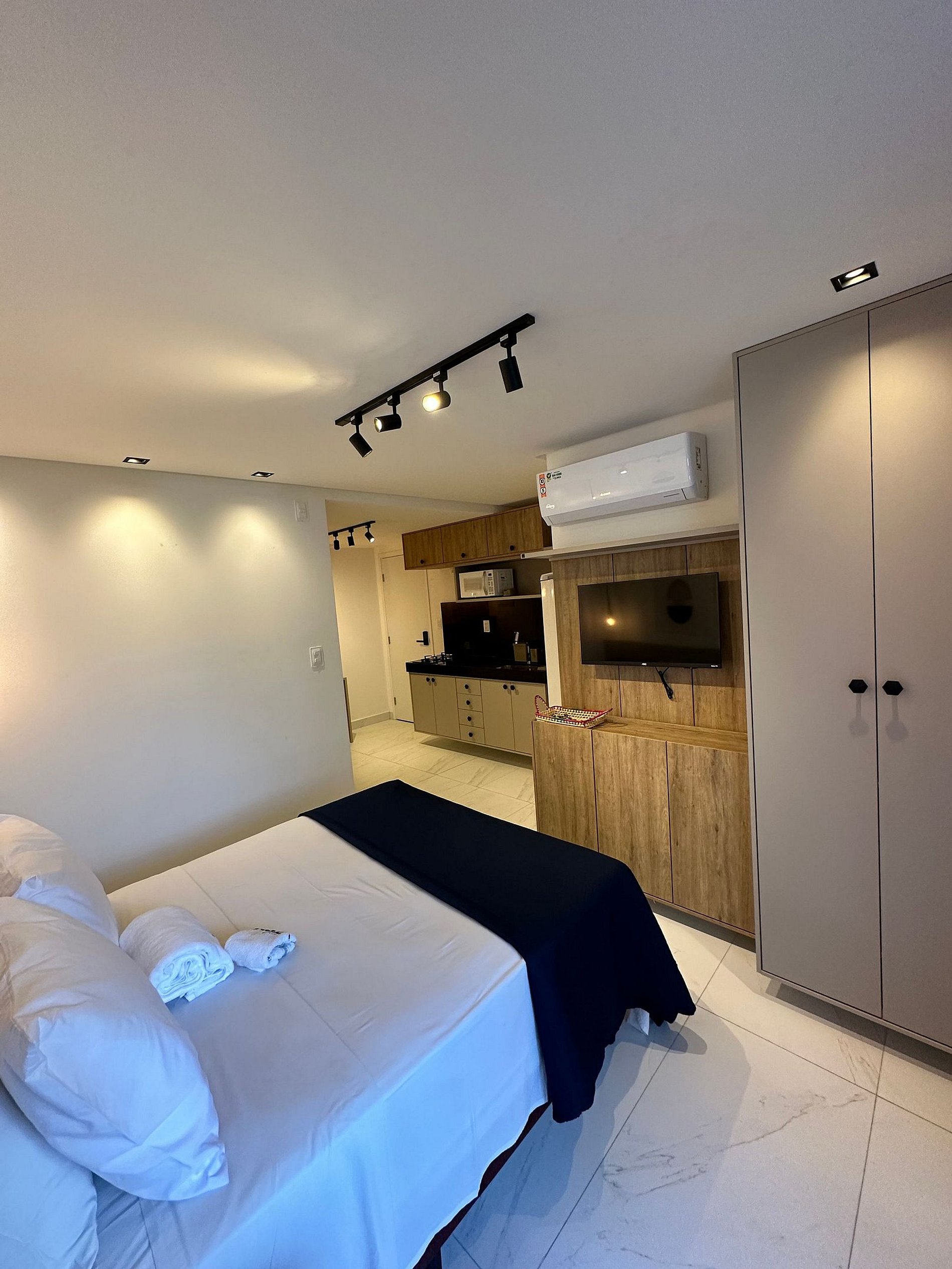 - O flat é super funcional com uma cama de casal.