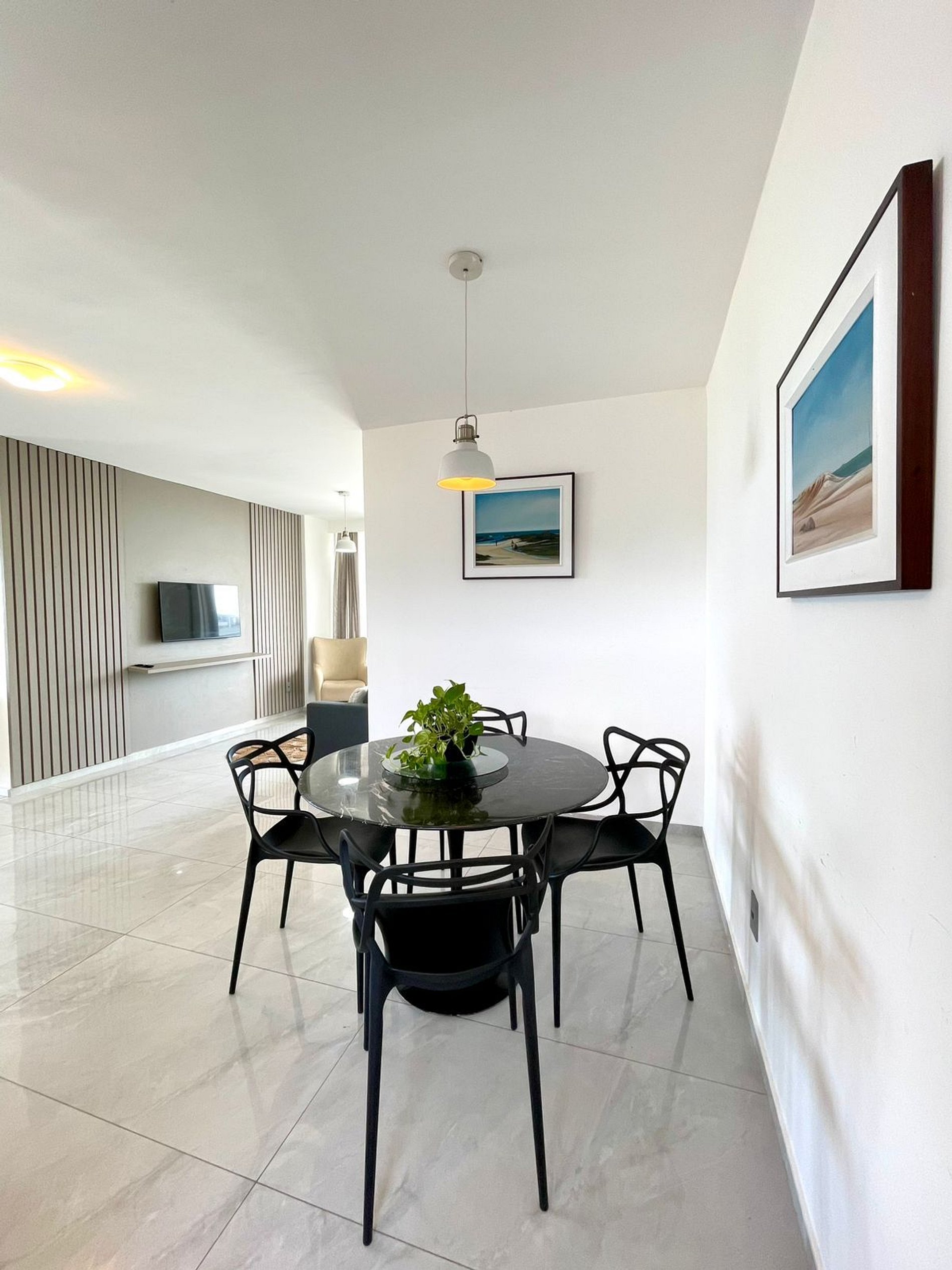 • Cobertura com varanda que possui banheira privativa, com ambientes Integrados e aconchegantes: A decoração moderna e funcional cria um ambiente acolhedor, ideal para relaxar após um dia de praia.