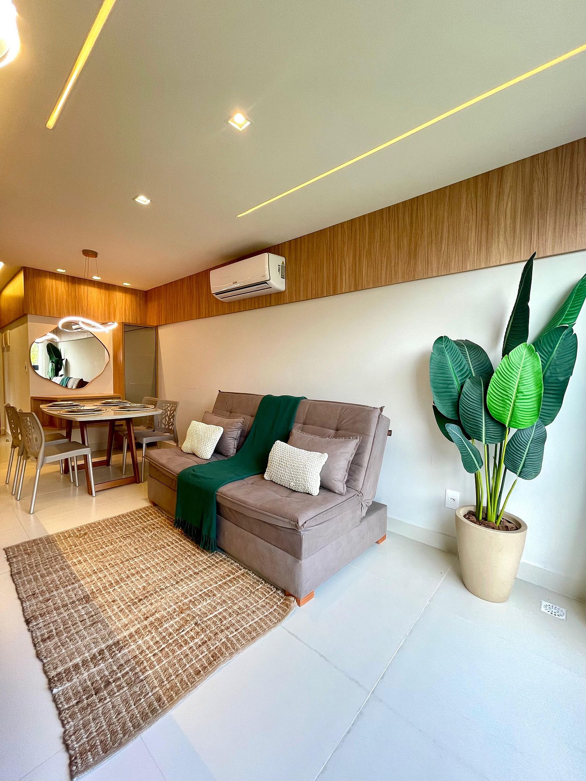 Apartamento completo e aconchegante, ideal para quem busca conforto e praticidade durante a estadia. Conta com um quarto climatizado e super confortável, perfeito para noites tranquilas de descanso. A sala também é climatizada e possui um sofá-cama espaçoso e confortável, garantindo mais comodidade para todos.