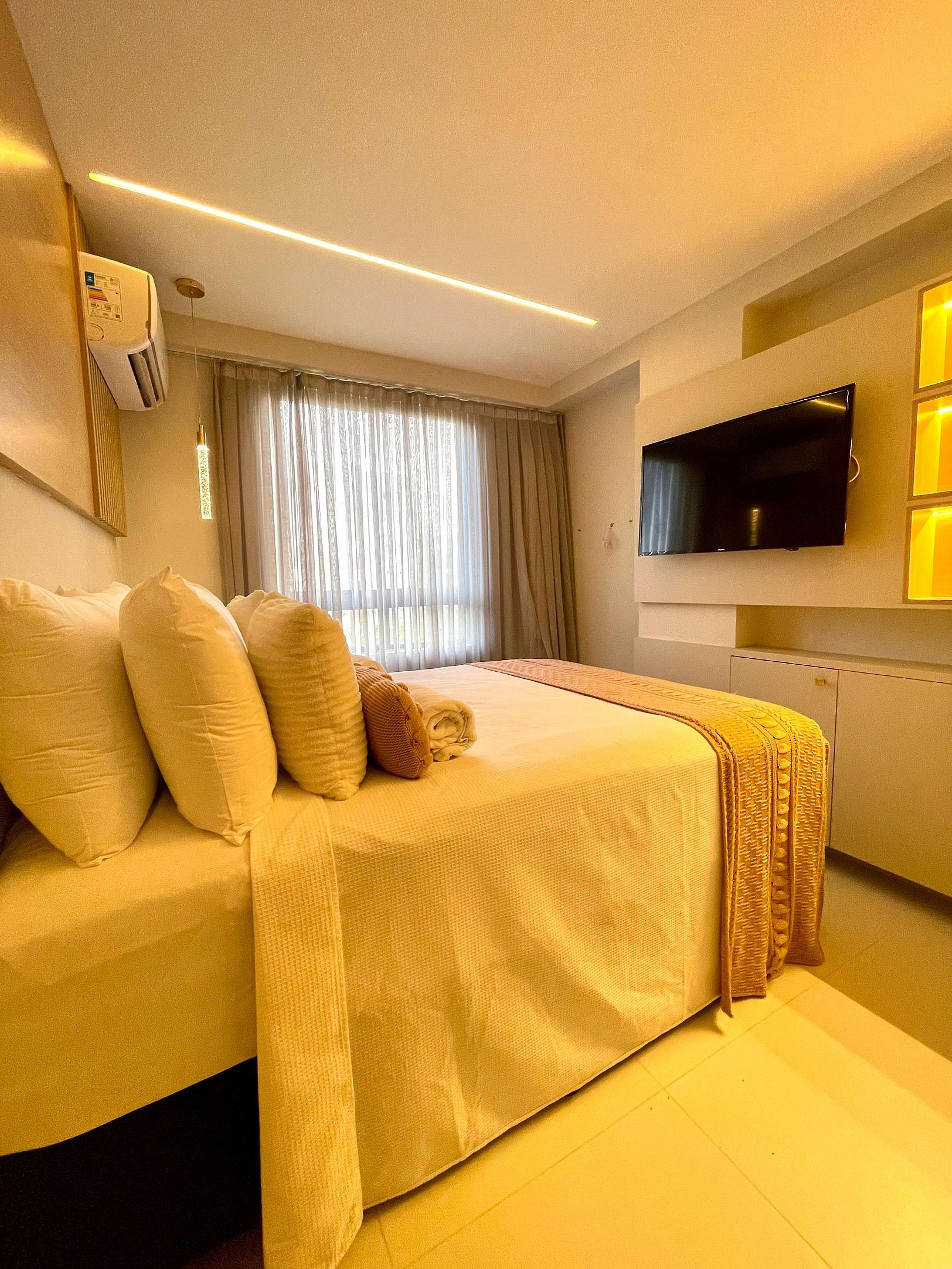 Espaço muito confortável, moderno, funcional. Com acesso a piscina, academia climatizada, cobertura com vista para o mar.