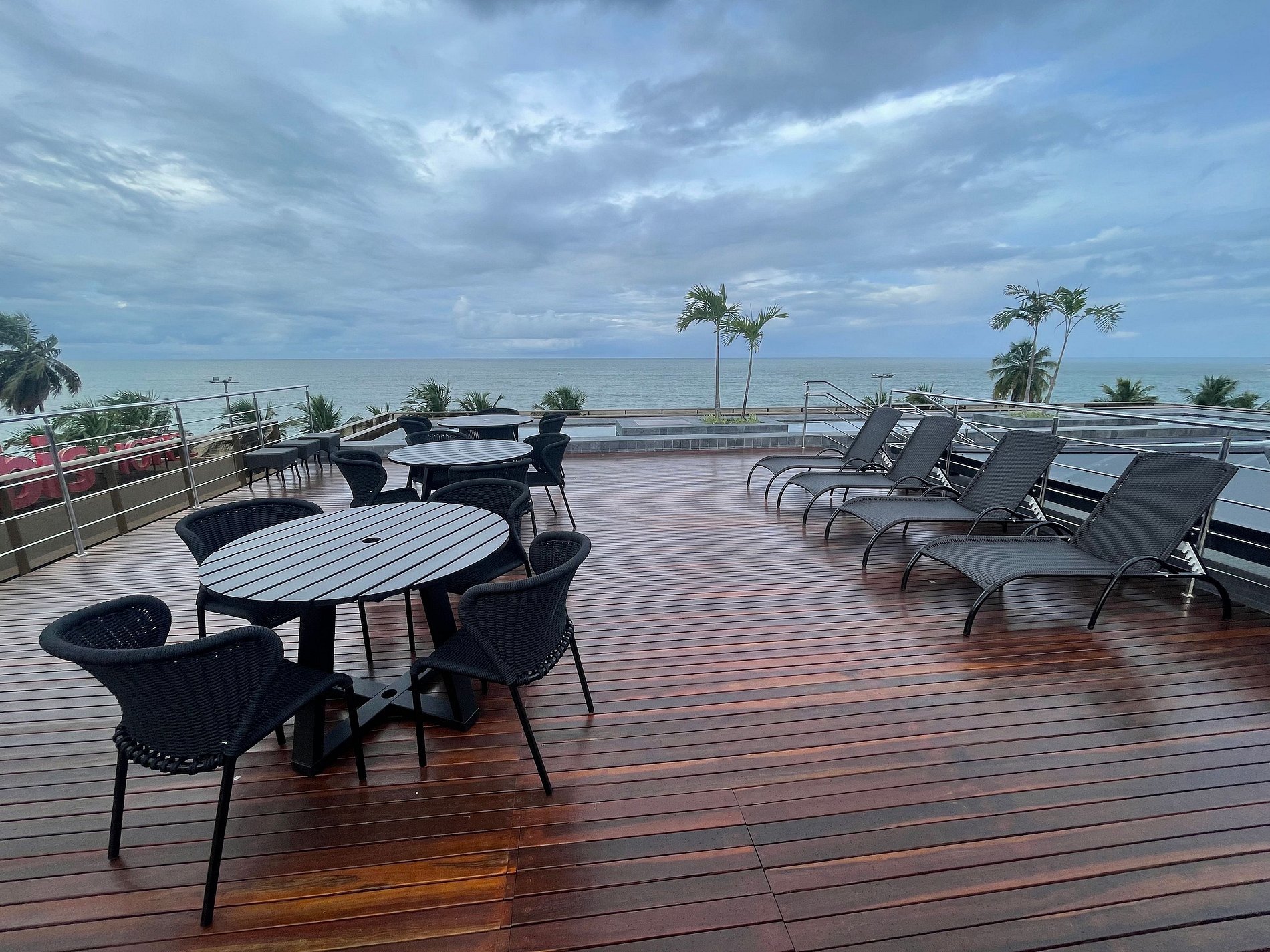 - Lounge maravilhoso com guarda-sol e espreguiçadeiras.