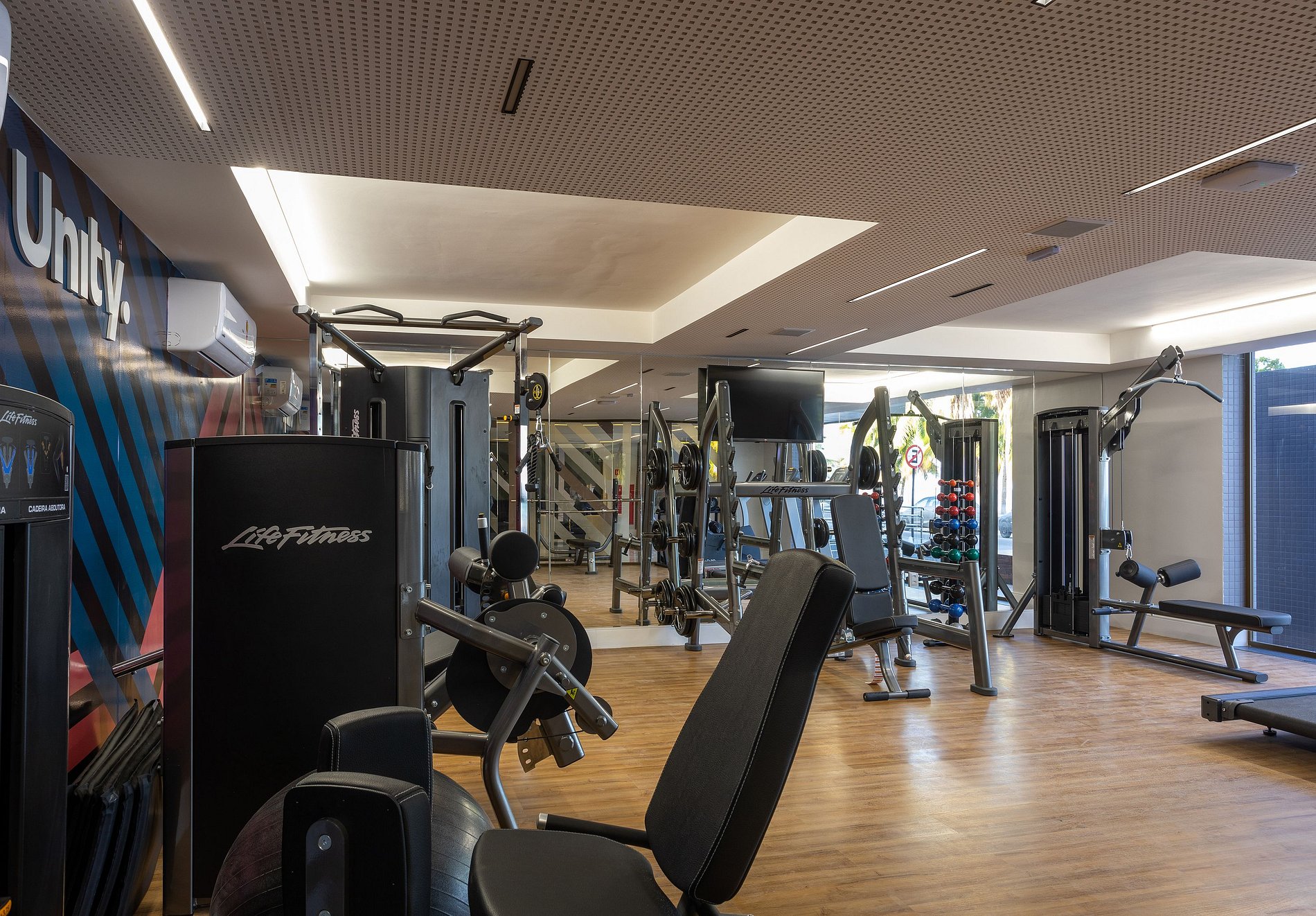 - Academia completa com equipamentos Life Fitness.