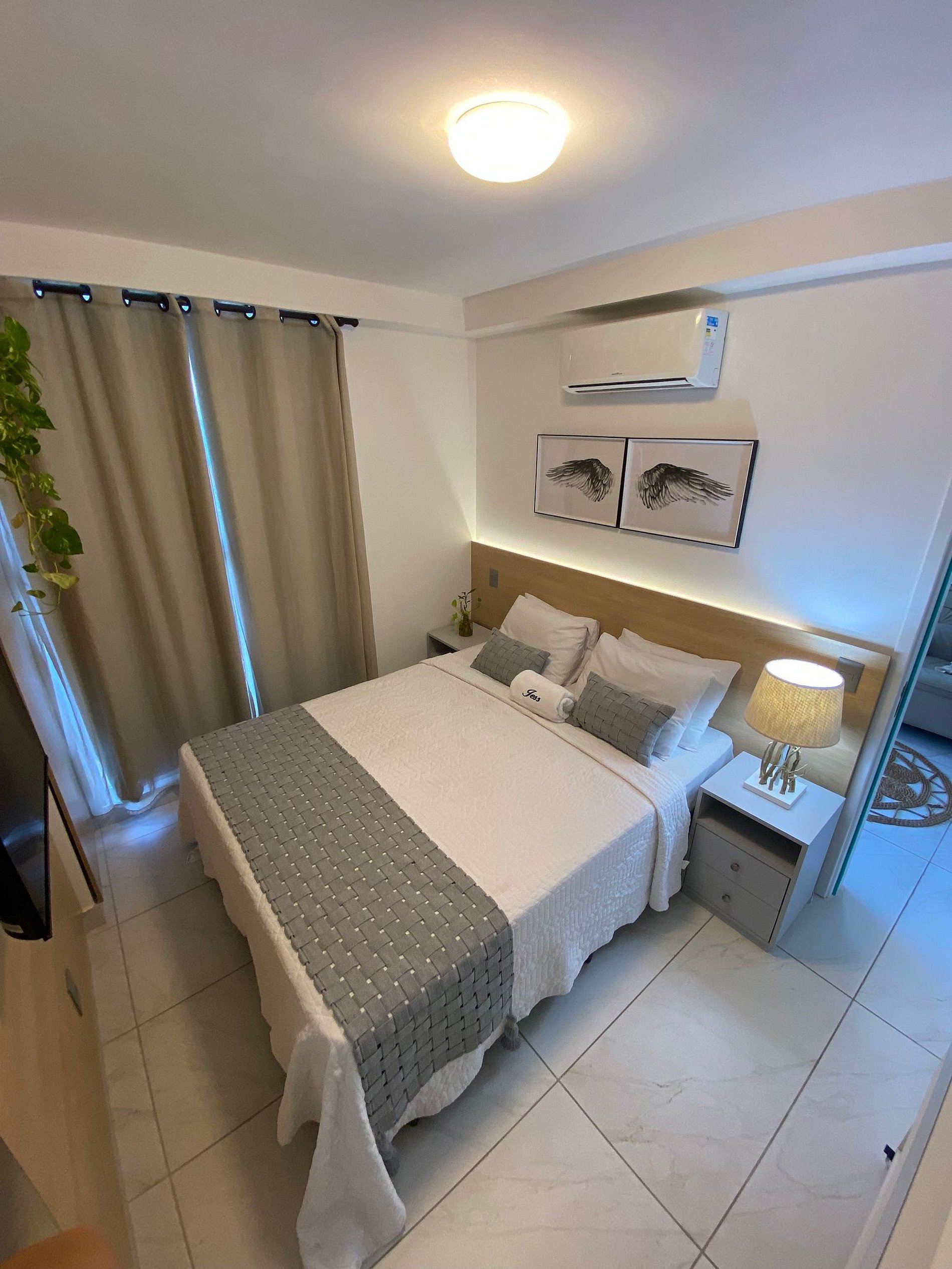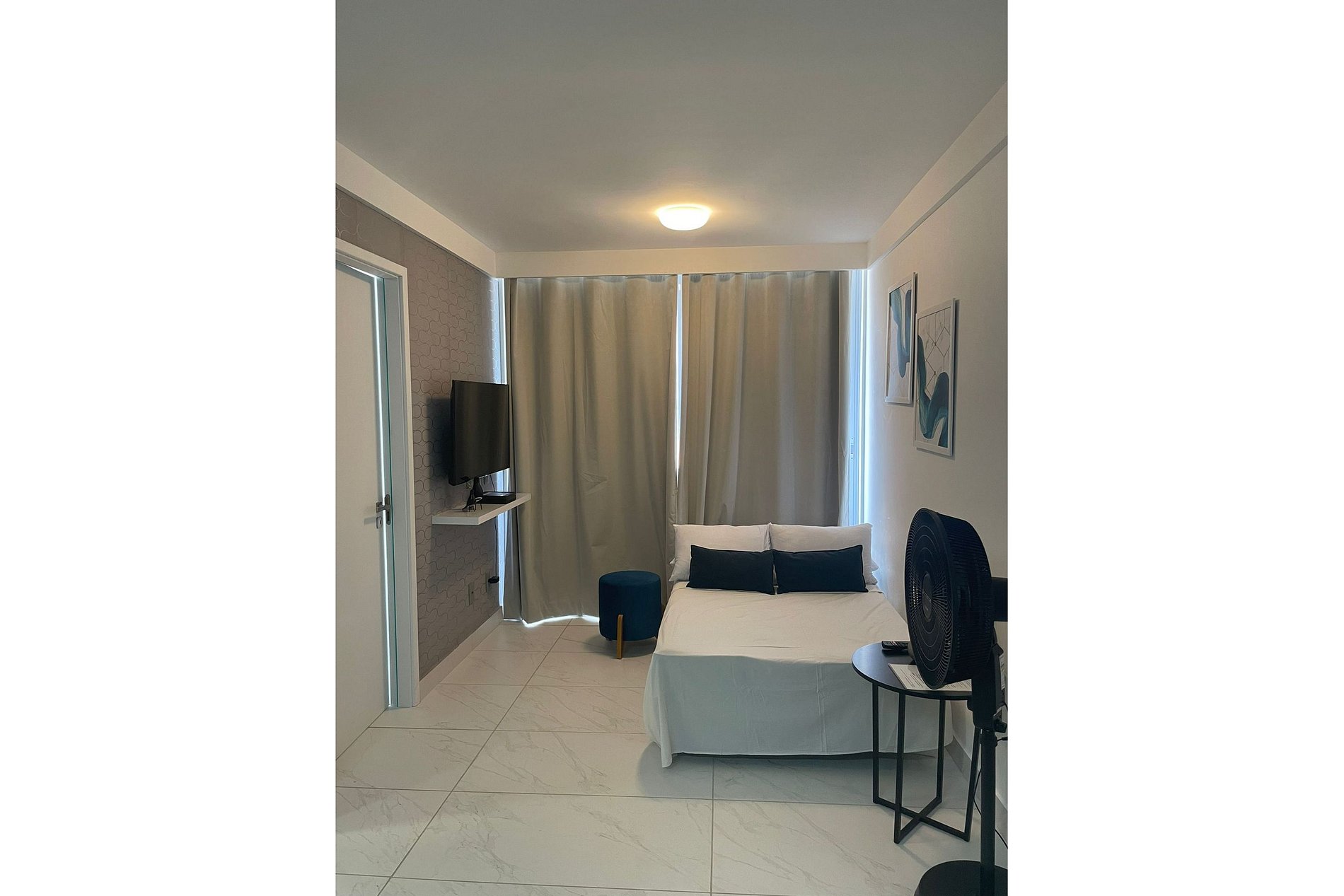O apartamento oferece um quarto espaçoso com cama queen e TV, além de uma sala equipada com um sofá-cama confortável, ideal para acomodar até quatro pessoas. A cozinha é prática e totalmente equipada com utensílios para preparar suas refeições com facilidade. Para quem precisa trabalhar ou se manter conectado, o Wi-Fi é rápido e estável.