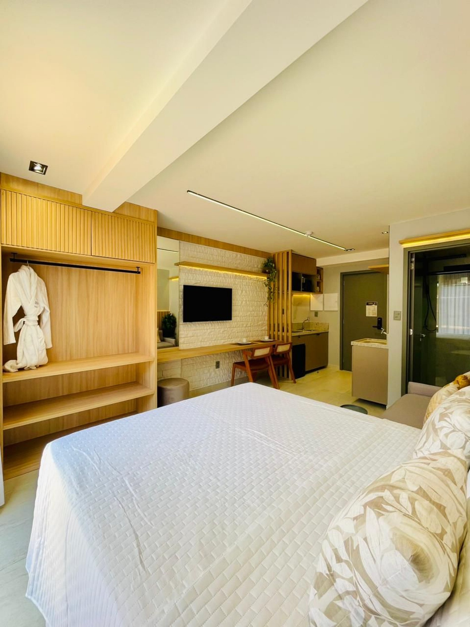 O apartamento é completo, com cozinha equipada (eletrodomésticos e utensílios) para preparar suas refeições com conforto.