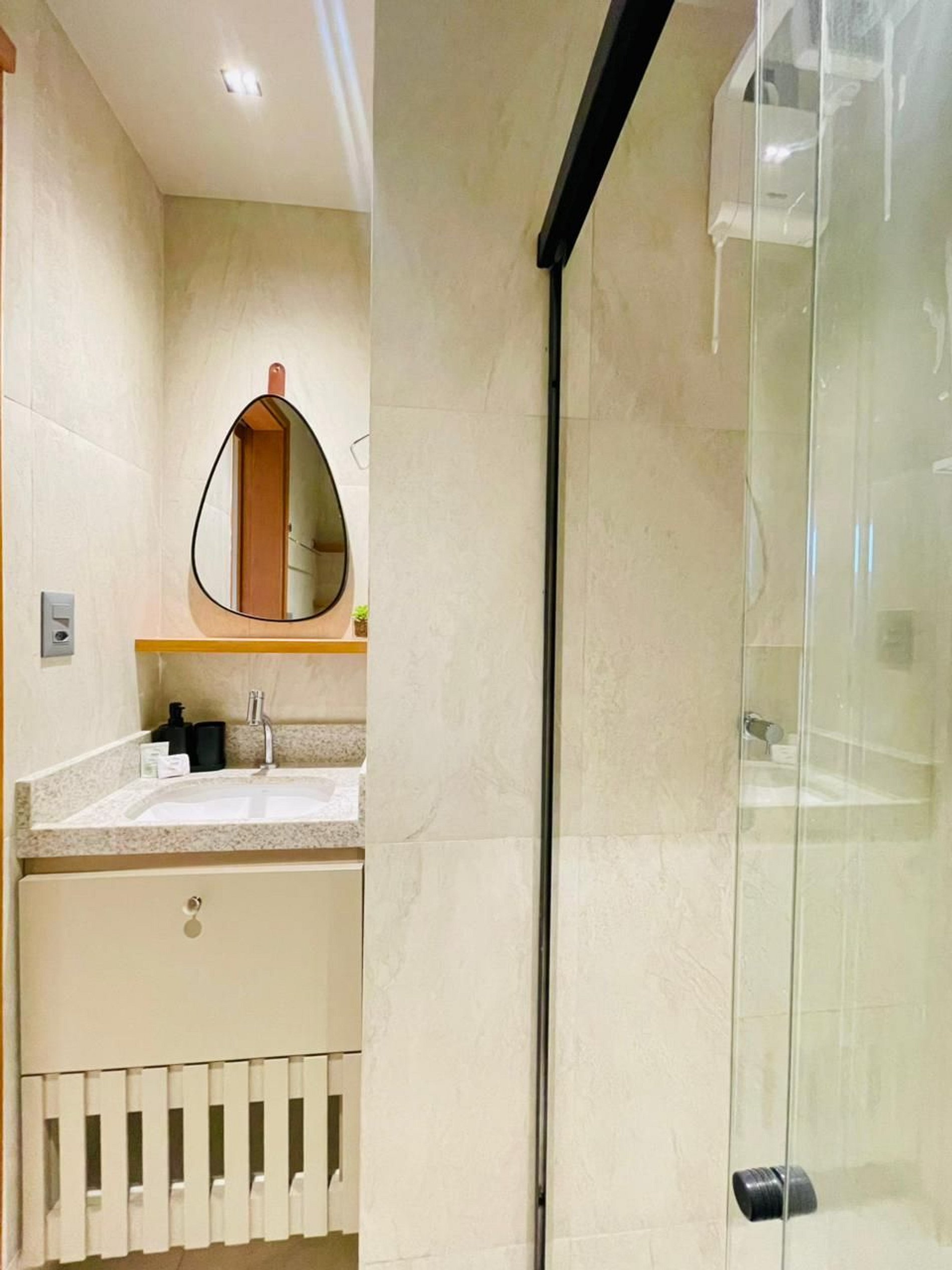 O apartamento é completo, com cozinha equipada (eletrodomésticos e utensílios) para preparar suas refeições com conforto.