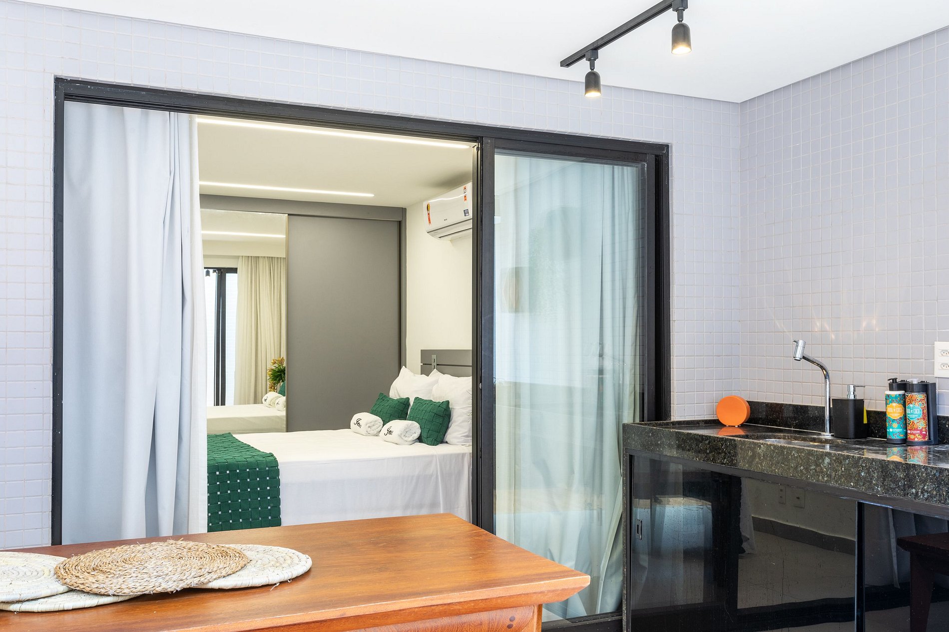 • Área externa privativa com mesa ampla e banheira (não aquecida)