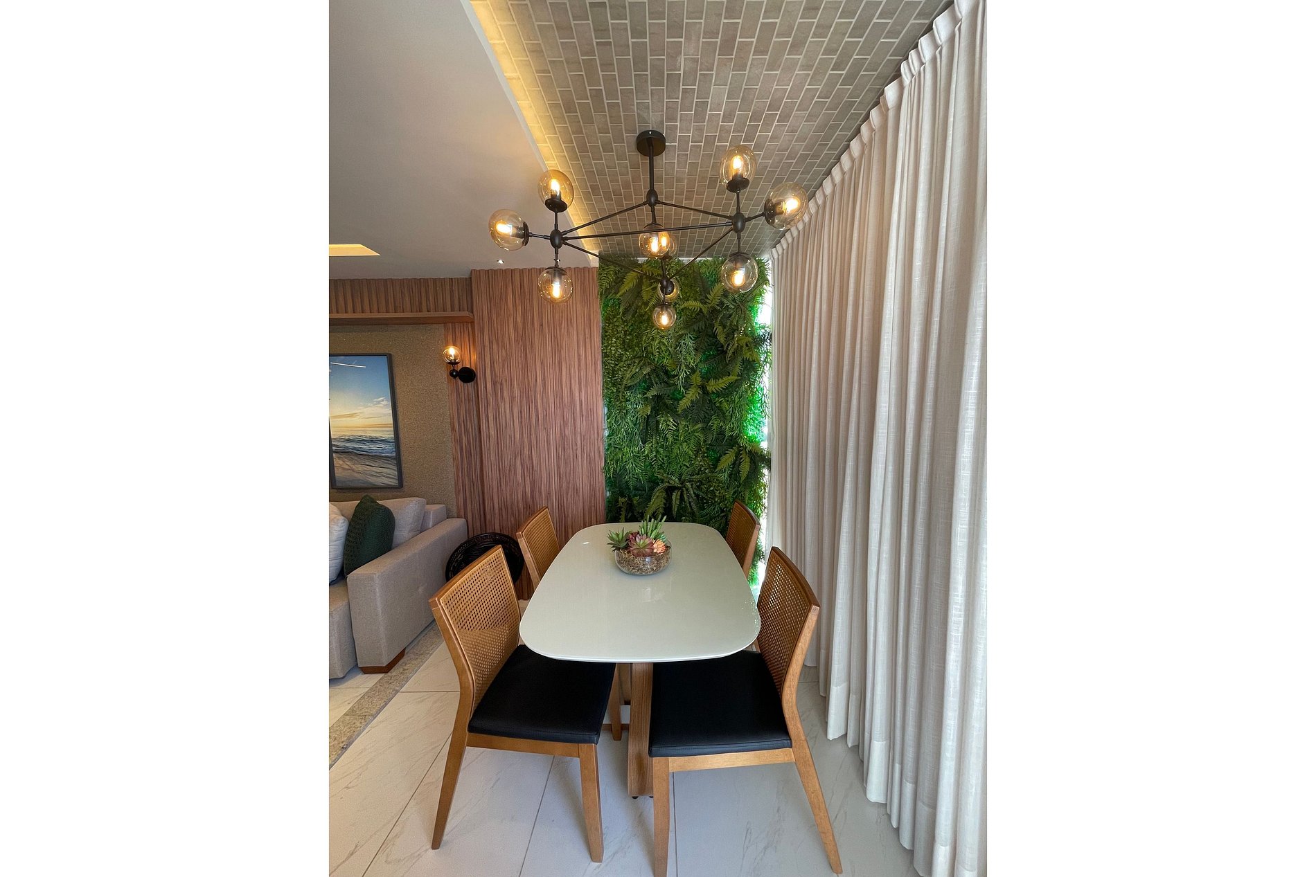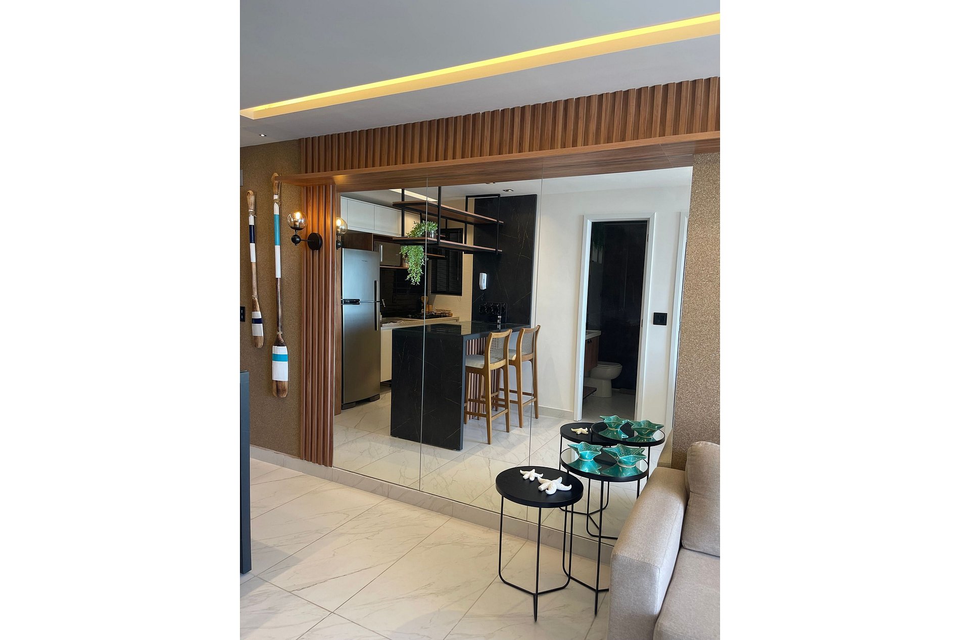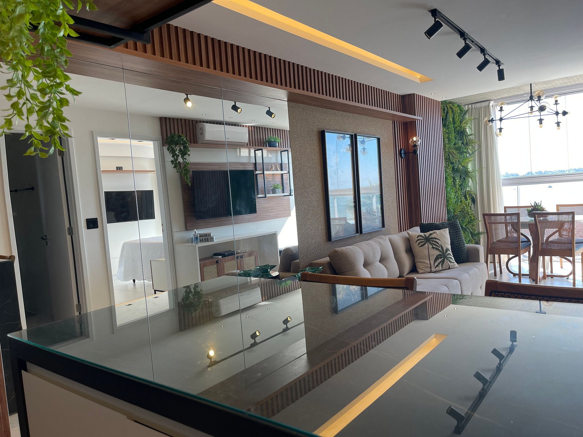 • Sala de estar climatizada com ar-condicionado, perfeita para relaxar após um dia de praia.