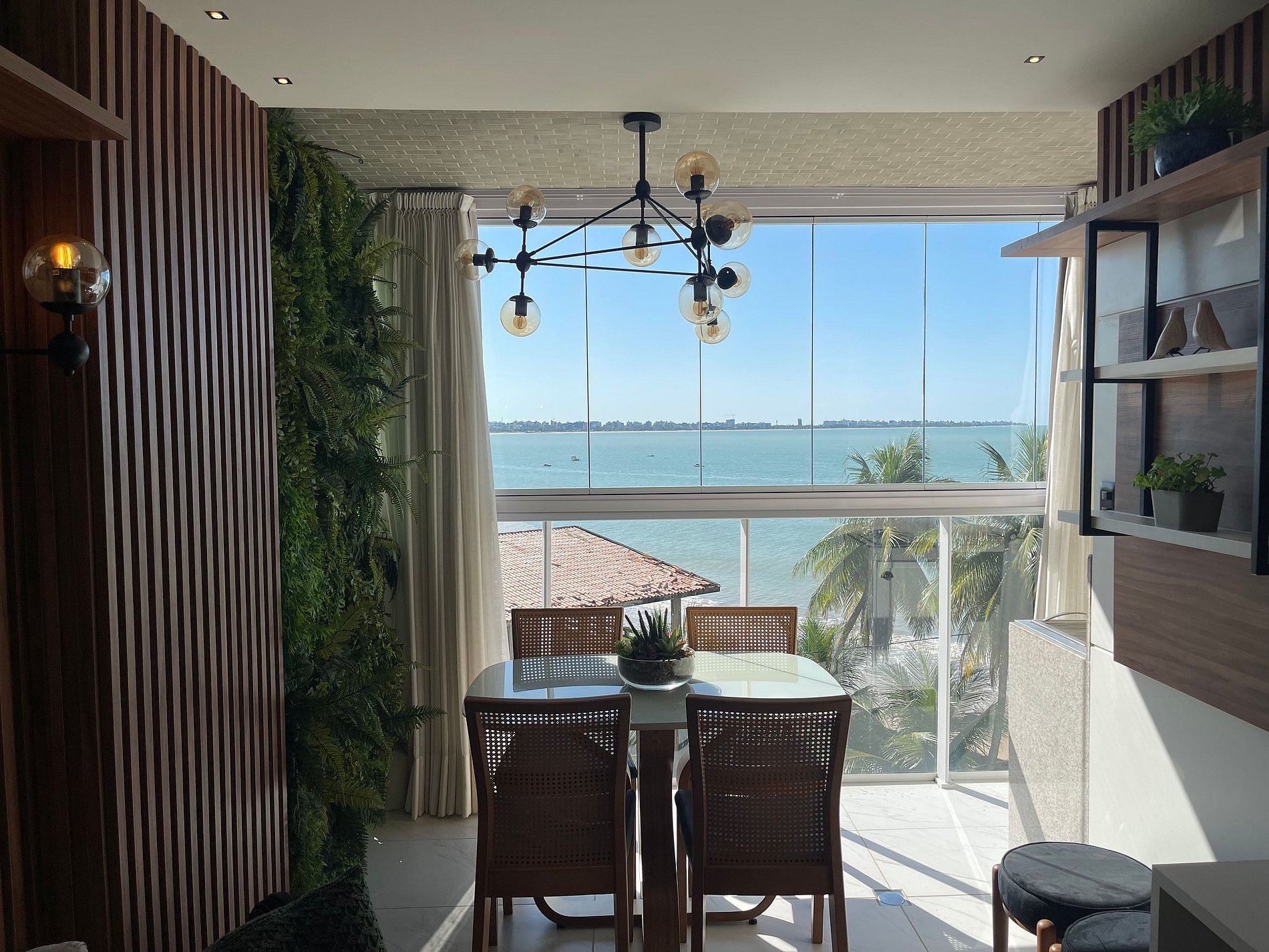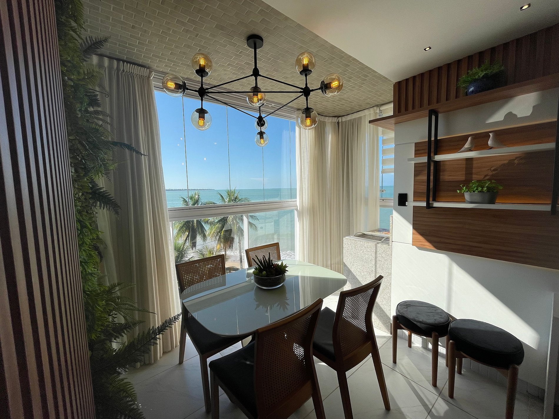 • Varanda com Vista para o Mar, com mesa para 4 pessoas, perfeita para refeições ao ar livre, momentos de lazer ou apenas contemplar o nascer e o pôr do sol com uma vista deslumbrante.