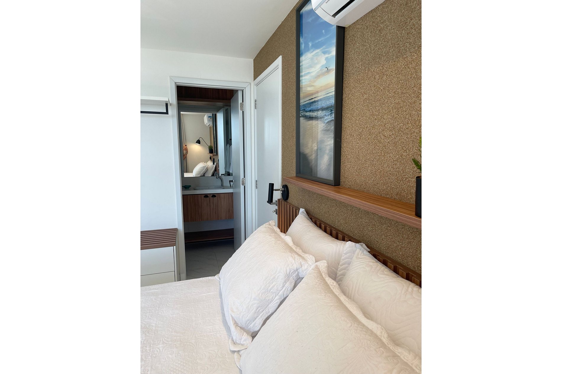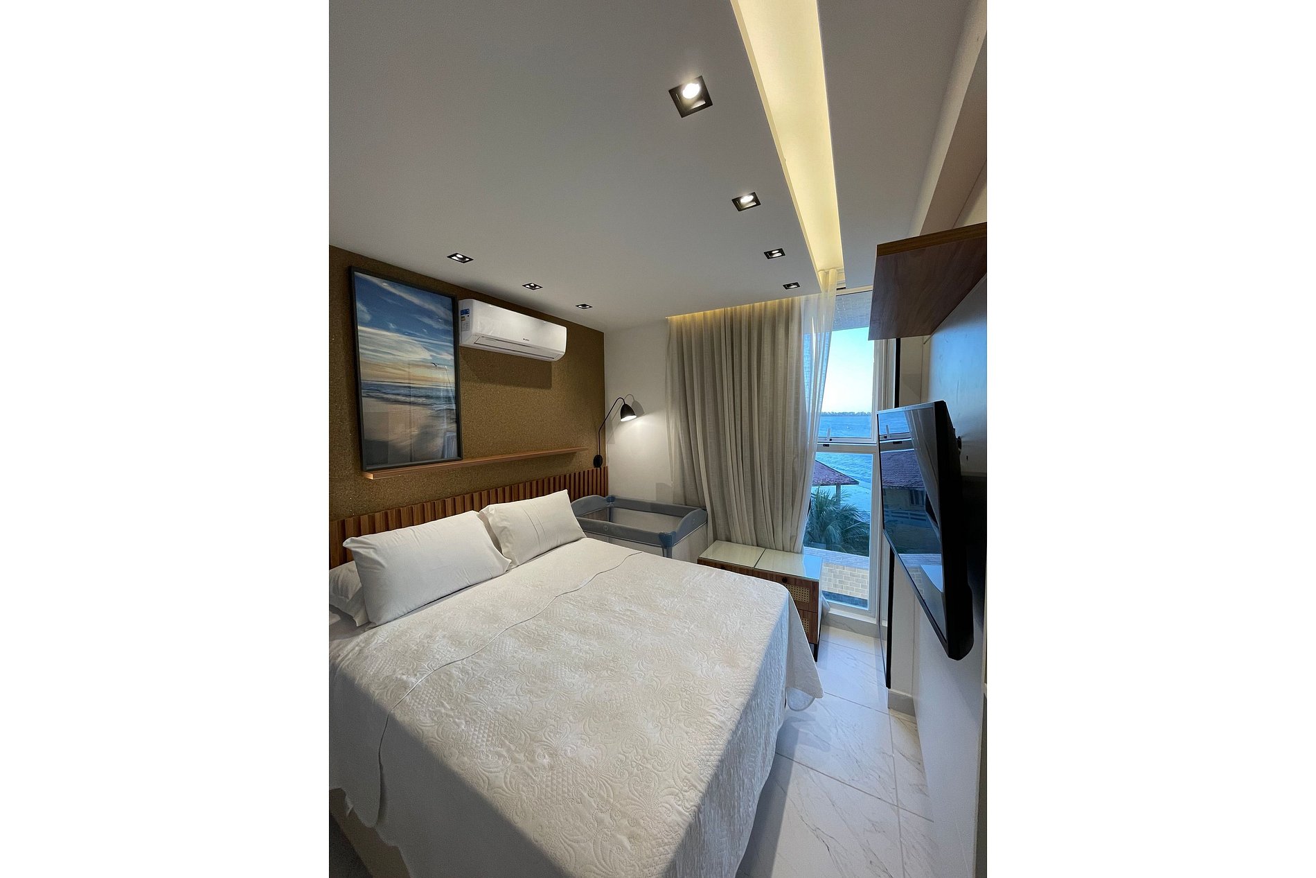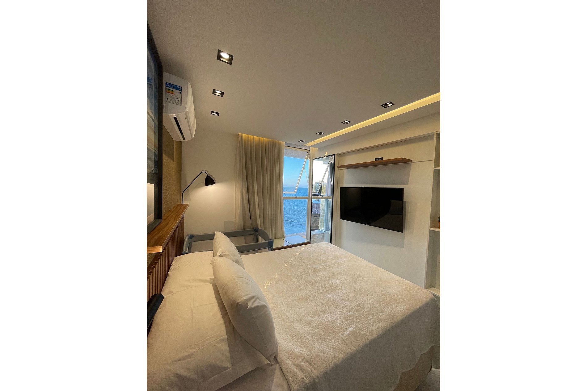 • Quarto suíte com cama confortável e uma vista maravilhosa para o mar, proporcionando um despertar relaxante todos os dias.
