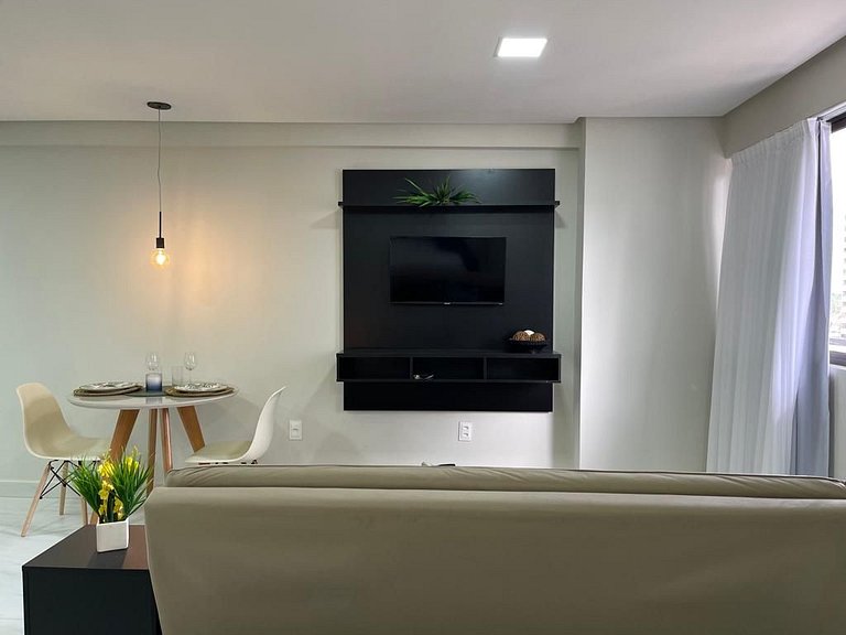 Lindo e moderno apartamento no Cabo branco. O apartamento é muito aconchegante e tem uma paz maravilhosa. Com tudo funcional. Localização privilegiada, com acesso a poucos minutos a praia caminhando. Na mesma rua do prédio tem, padarias, supermercado 24hr, restaurantes, farmácia. Área de lazer incrível na cobertura do prédio com piscina, bancada gourmet e com uma vista maravilhosa da cidade e da praia. Espero que tenham uma excelente férias e aproveitem bastante a cidade maravilhosa que é Jampa!