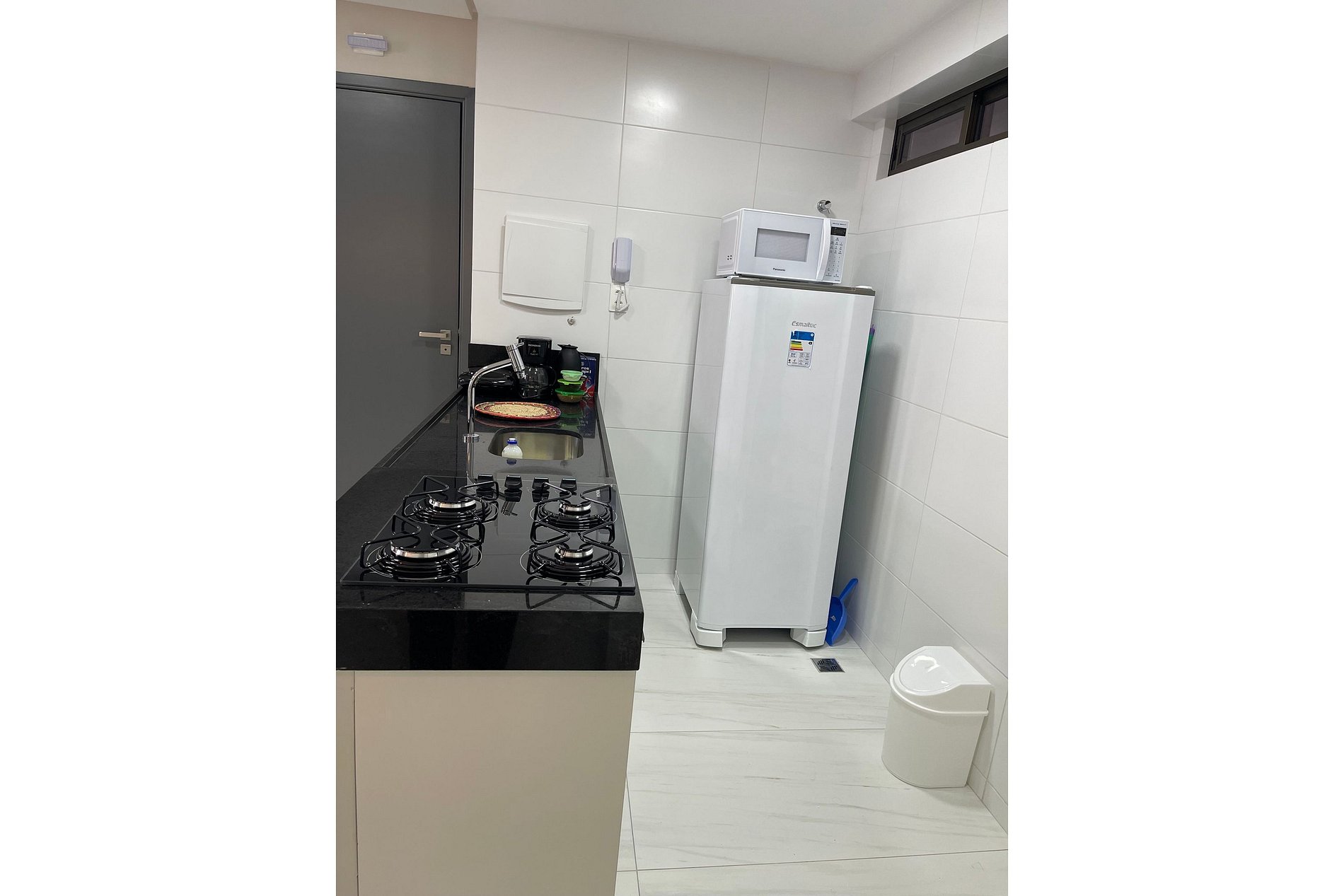 Deixamos itens iniciais (papel higiênico, detergente, pano de prato etc.) para sua chegada.
