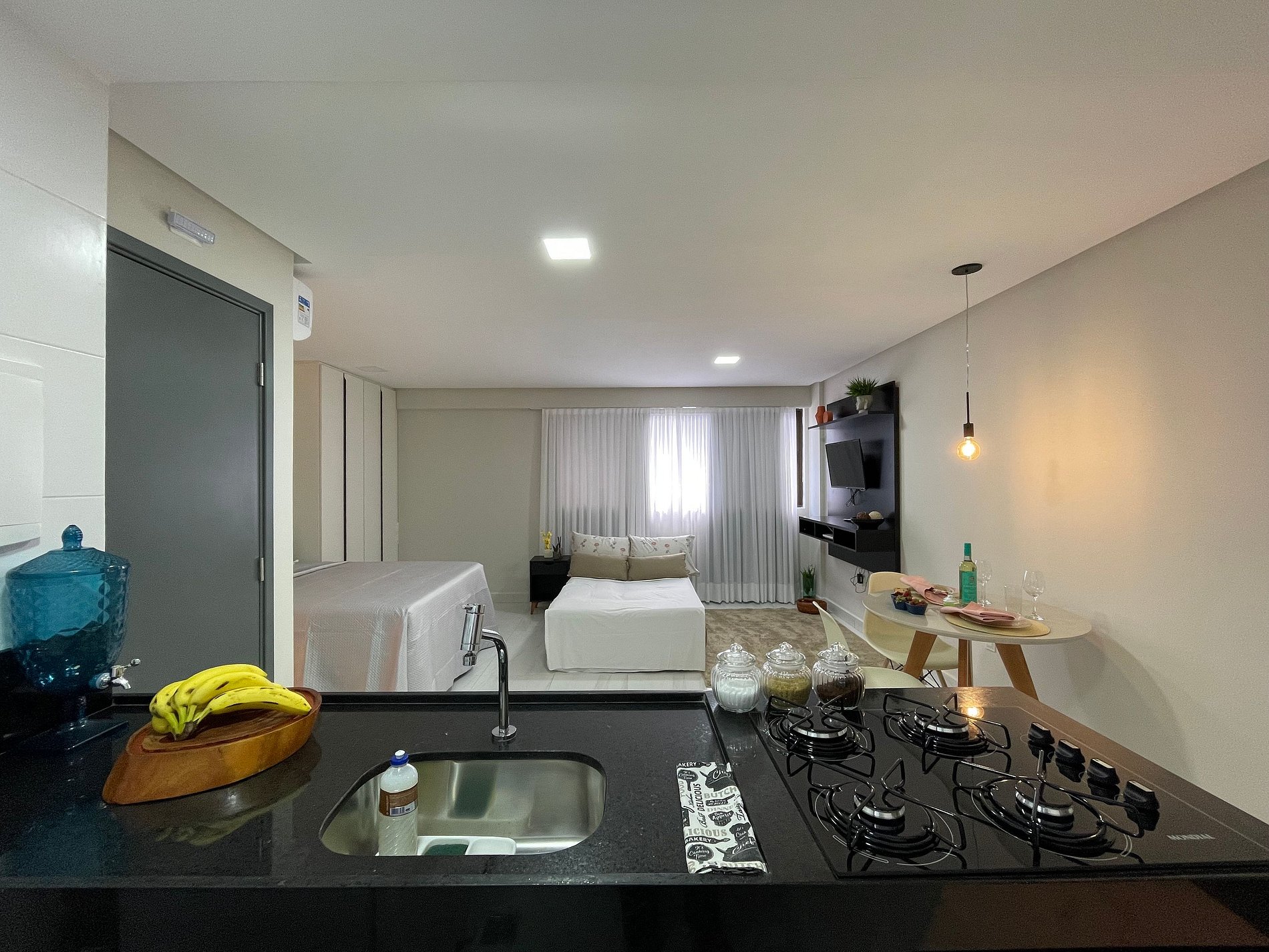 Deixamos itens iniciais (papel higiênico, detergente, pano de prato etc.) para sua chegada.