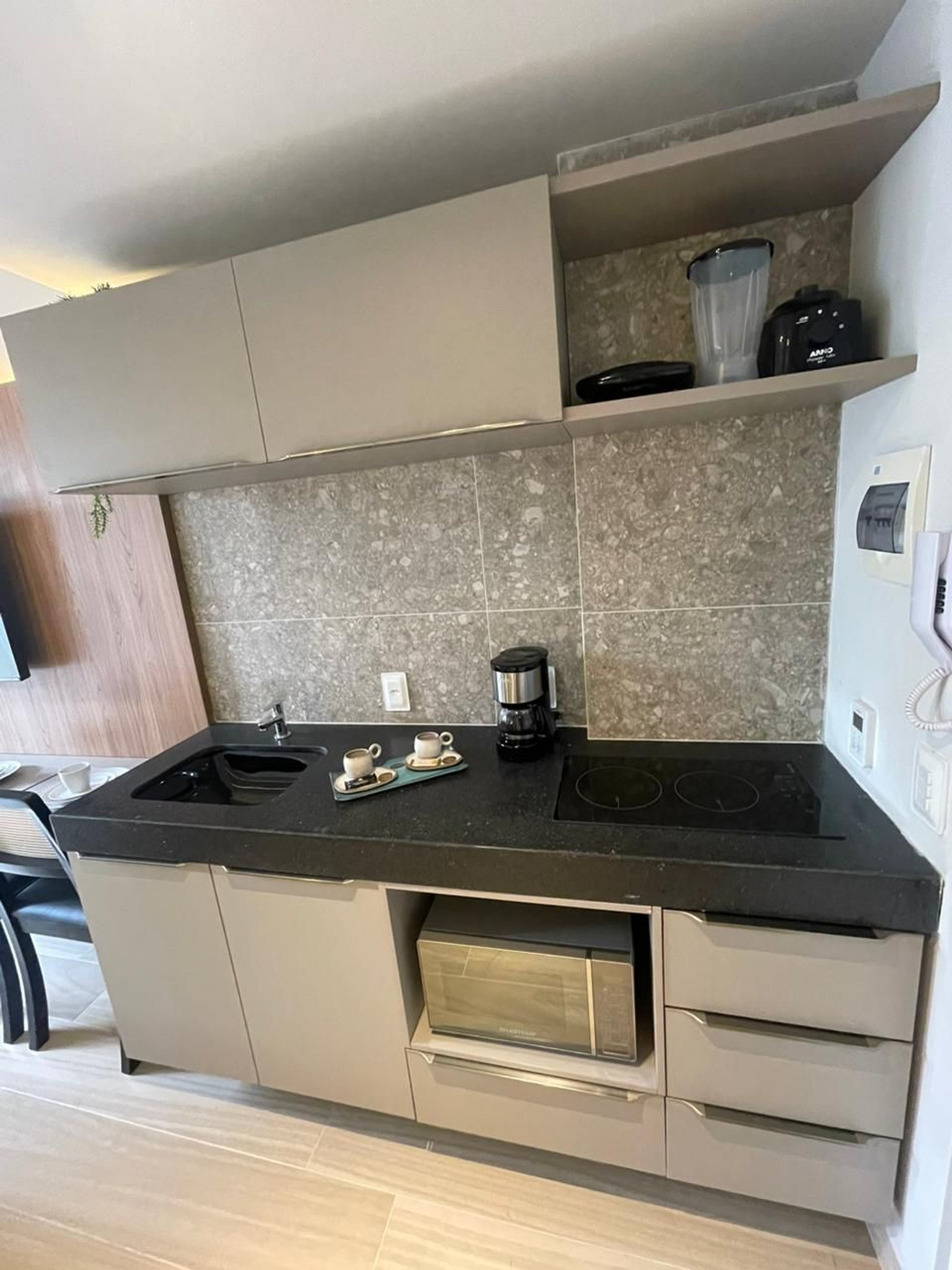 O apartamento é completo, com cozinha equipada (eletrodomésticos e utensílios) para preparar suas refeições com conforto.