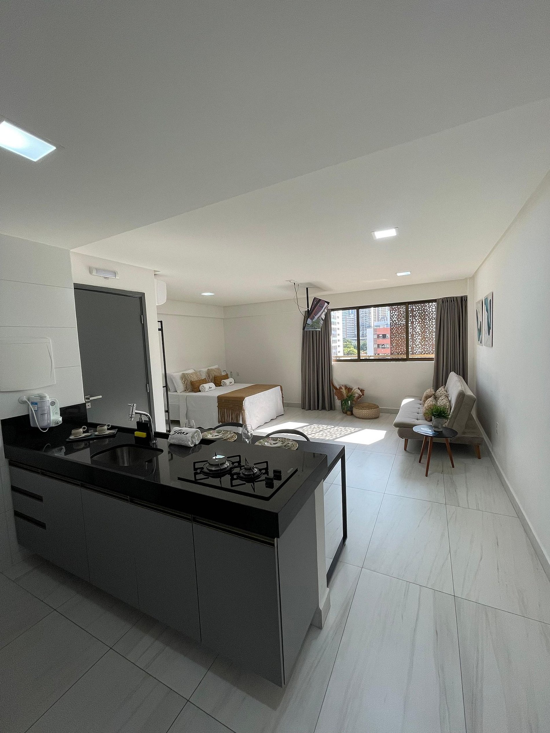 Deixamos itens iniciais (papel higiênico, detergente, pano de prato etc.) para sua chegada.